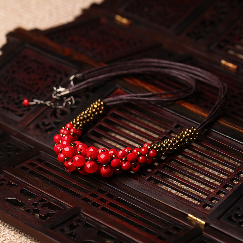 オリジナルの手作り水晶ビーズネックレス首鎖韓国版ファッションシンプルな短い鎖骨鎖装飾品女性百合