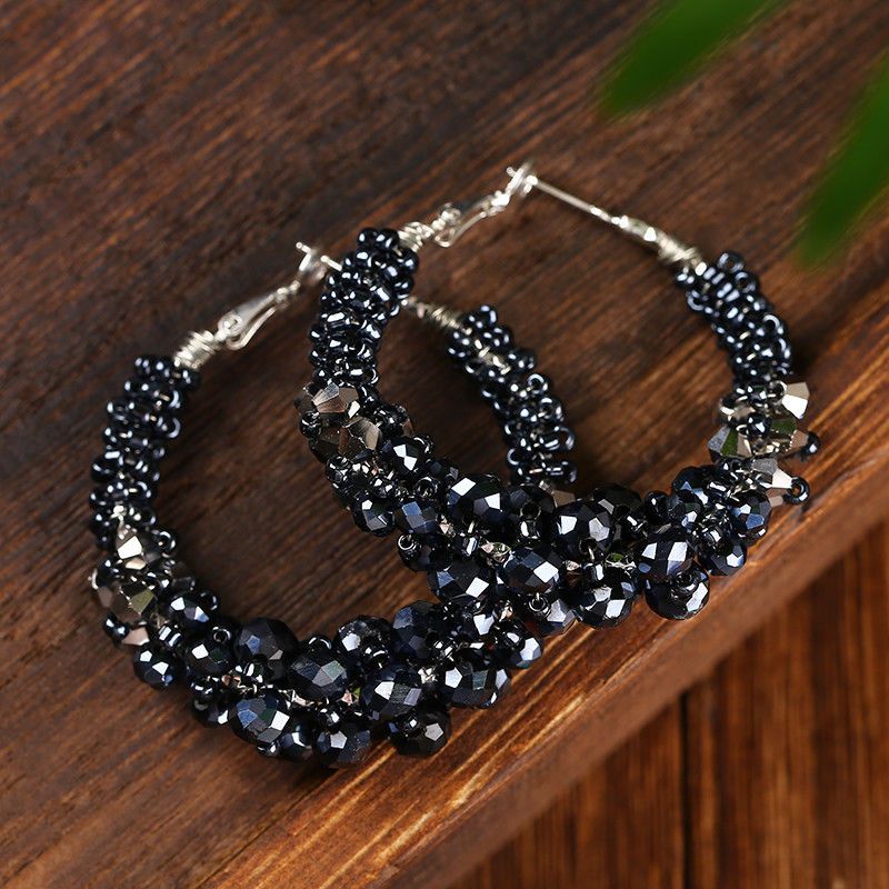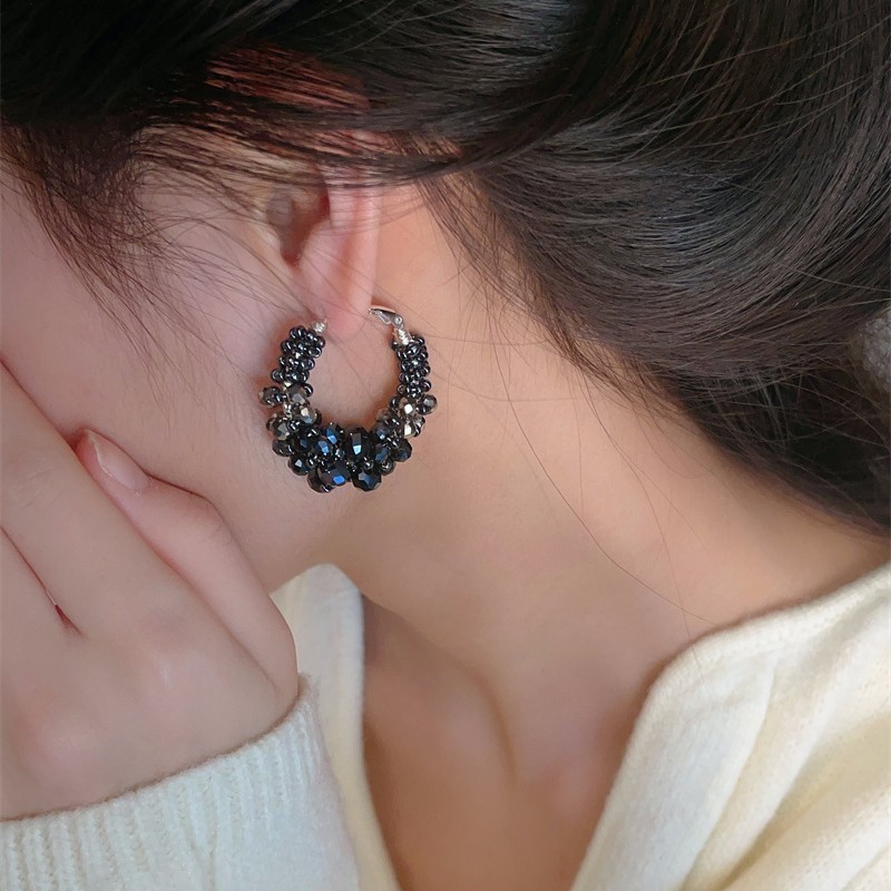 抖音爆款重工复古水晶缠绕圈圈耳环奢华小众手工气质时尚耳圈