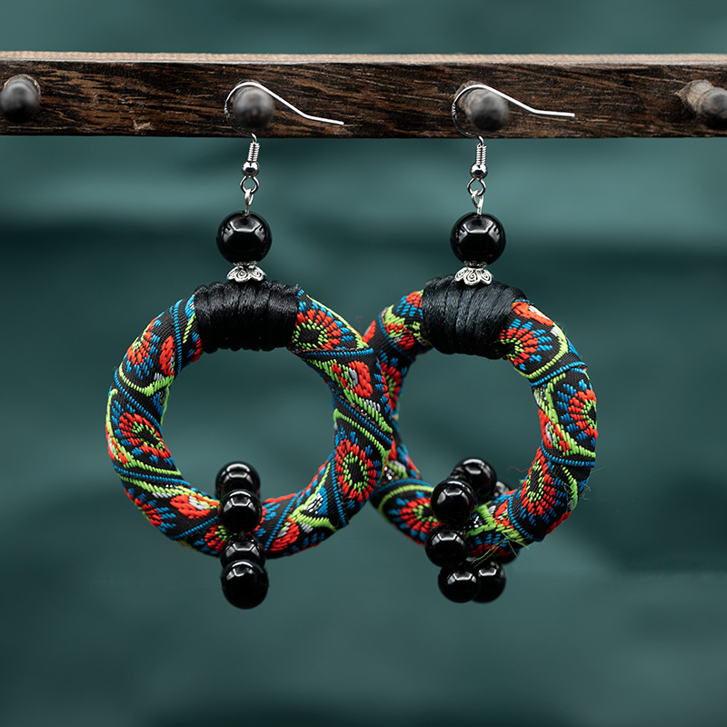 エスニック風布製イヤリング、ボヘミアン風ハンドメイド、個性的で誇張された旅行用アクセサリー、大きなイヤリング