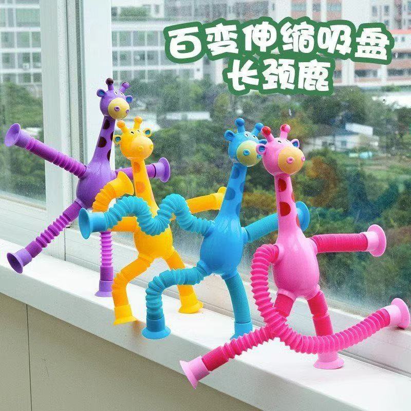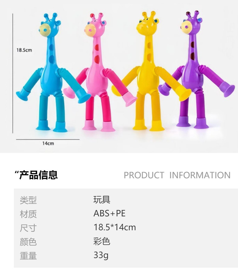 クロスボーダー発光百変吸盤キリン伸縮管玩具子供益智減圧玩具アニメ解凍玩具