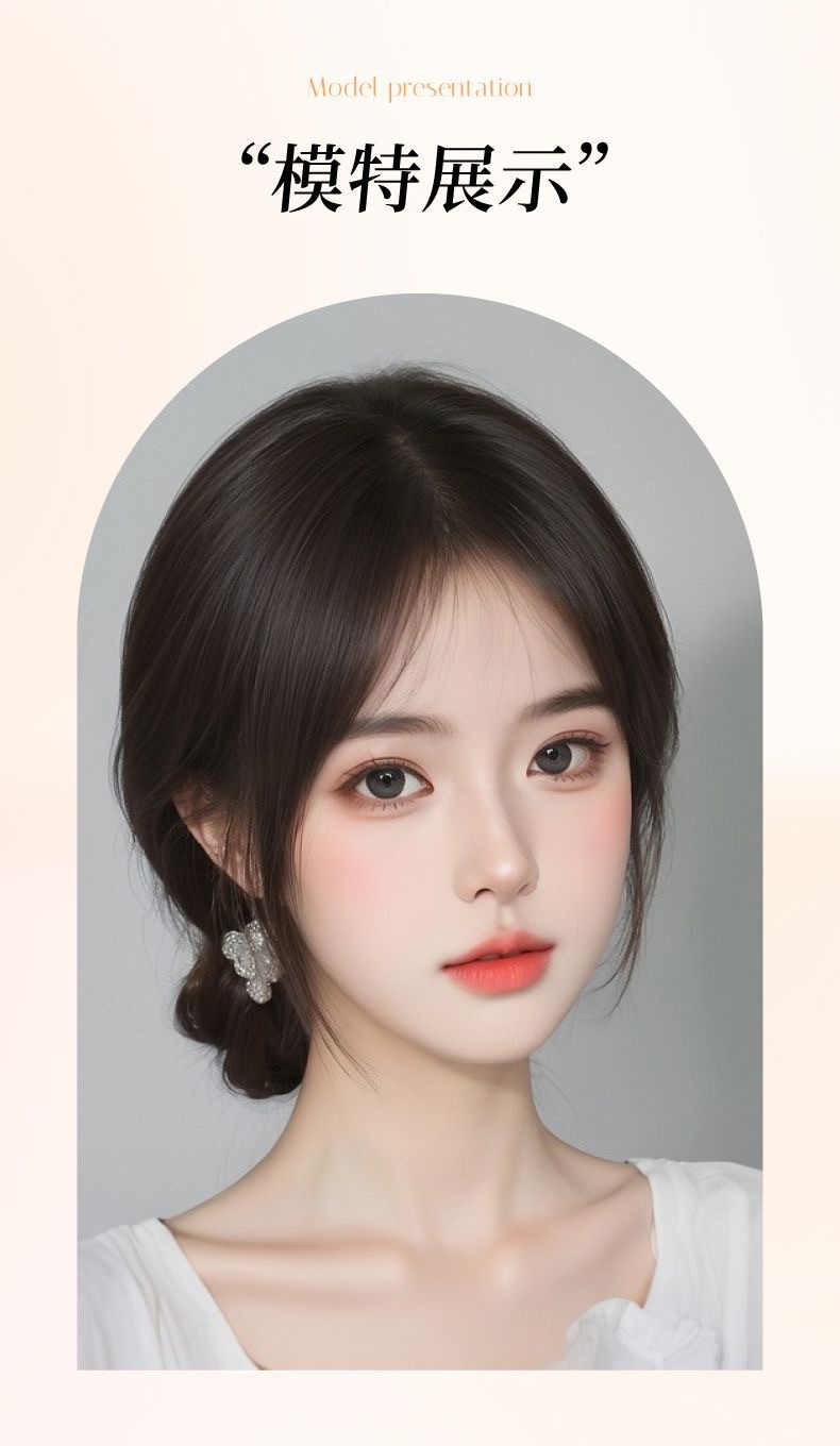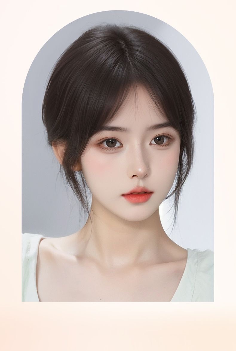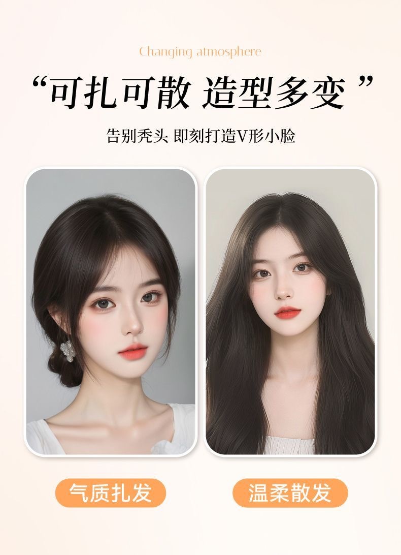 八の字の前髪のかつらの女性の切れはふわふわしています。