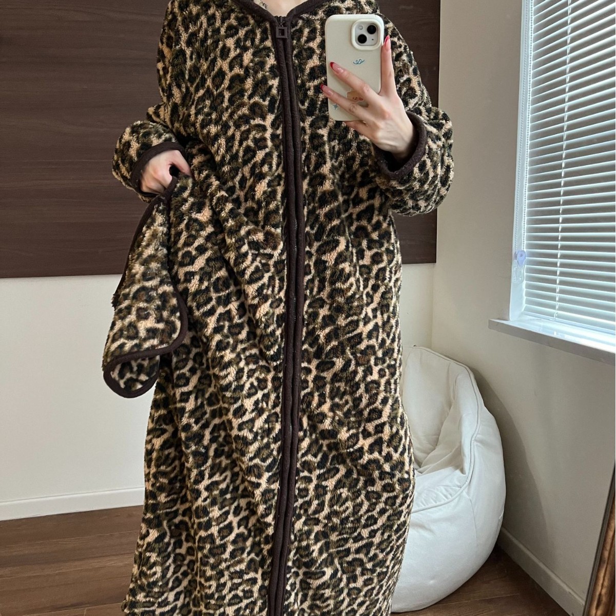 Honan [リアルショット] ウォーキングベッド 大きいサイズ ヒョウ柄 パジャマ 厚くて暖かい ホーム服 パジャマ フード付き ジッパー