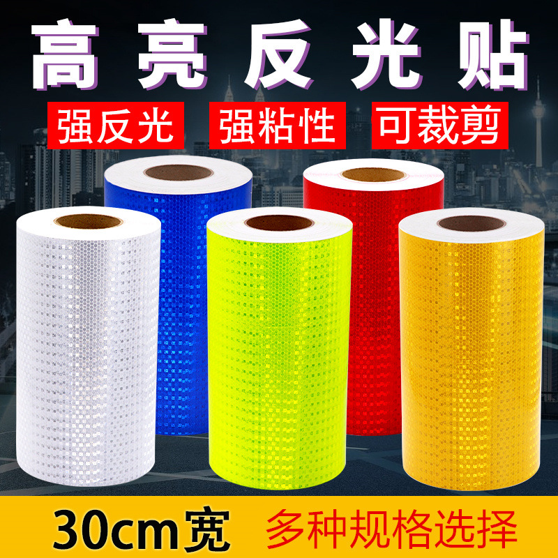 30厘米宽夜间反光贴条交通安全护栏立柱防撞警示贴纸高亮警示胶带
