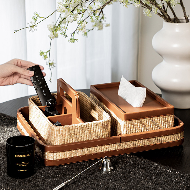 フレンチ式デスクトップレザー収納ボックス高級感軽豪華リモコンハイエンド家庭用リビング収納収納ボックス付き