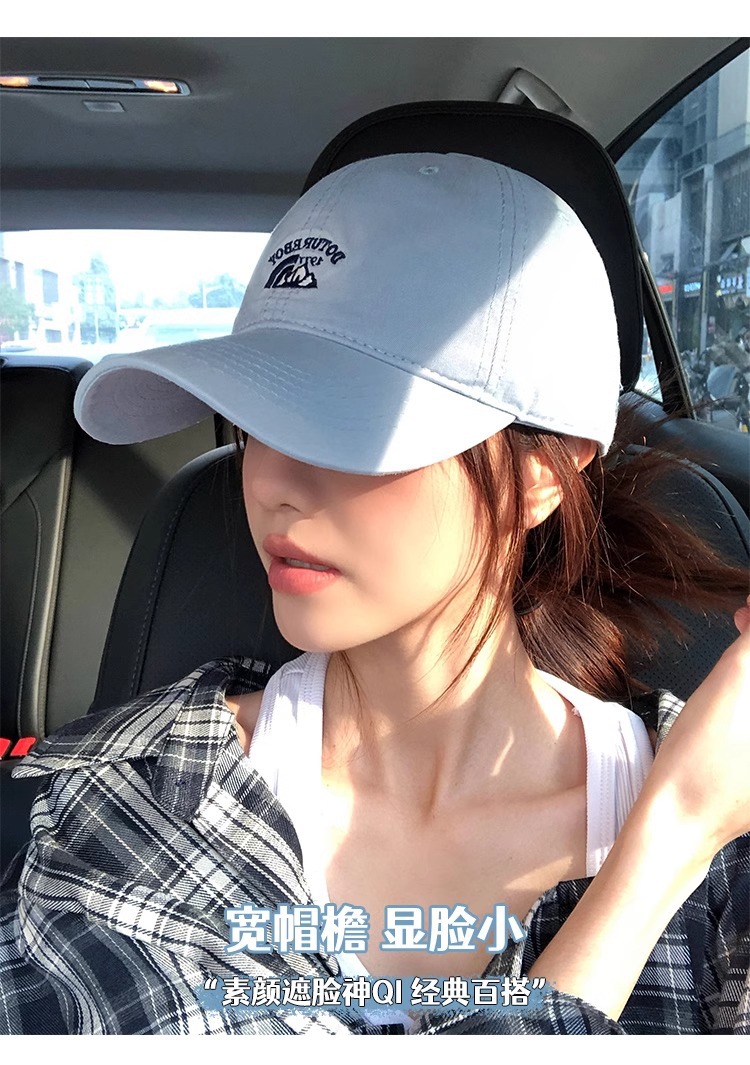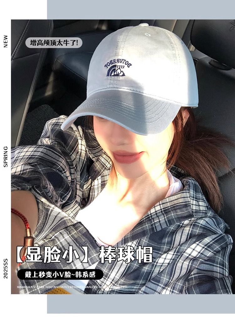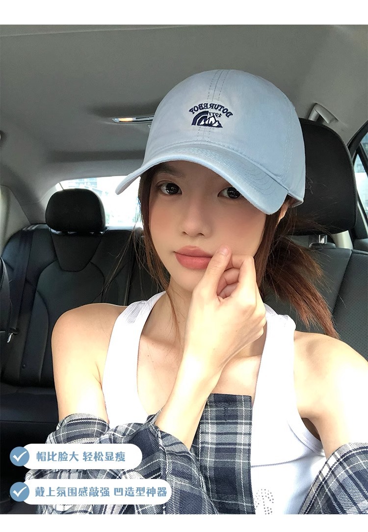 韓国版のアルファベットの刺繍は古い野球帽の女性2025の新型の大きい頭の周りの深い頂の広いつばの青いアヒルの舌の帽子を作ります。