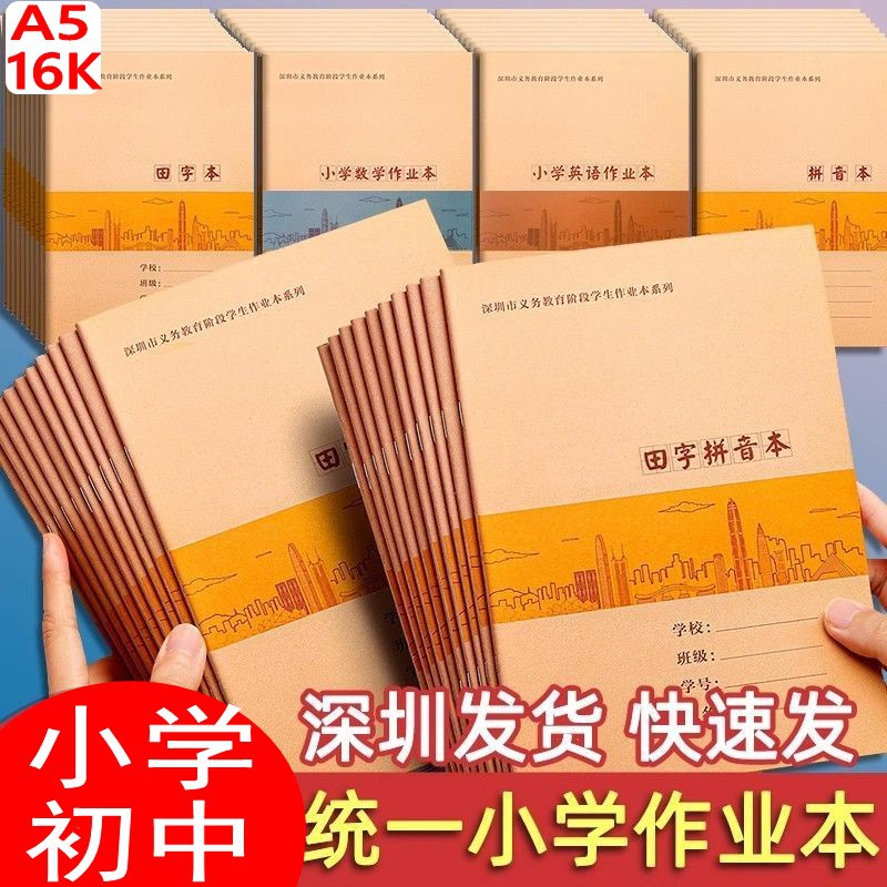 【深圳市新版统一作业本16K A5深圳小学生田字本拼音本护眼作业本