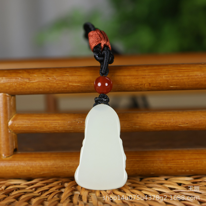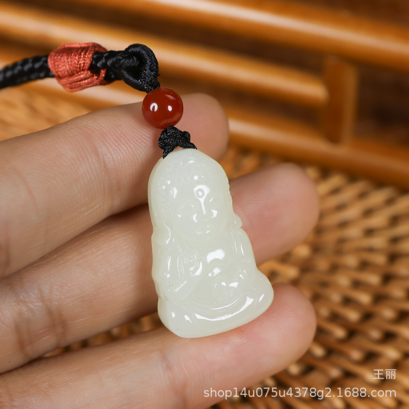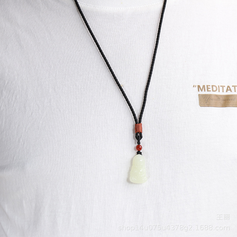 新疆和田玉青白玉仏ペンダント女性天然玉大腹笑仏弥勒仏玉佩ネックレスペンダント
