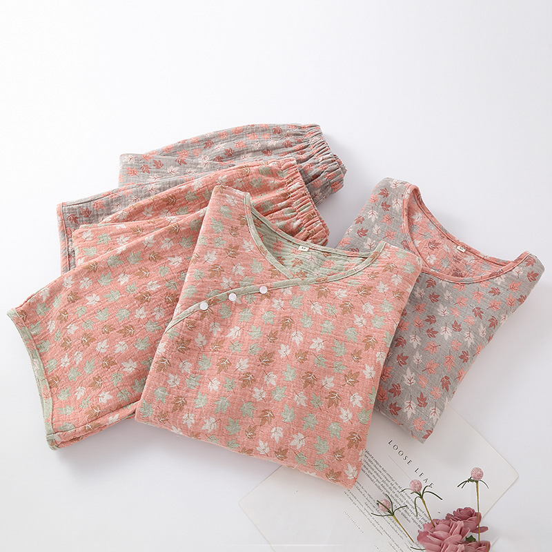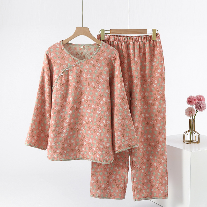 春と秋の新商品パジャマ女性二重ガーゼ男性女性カップル長袖ホームウェアセット