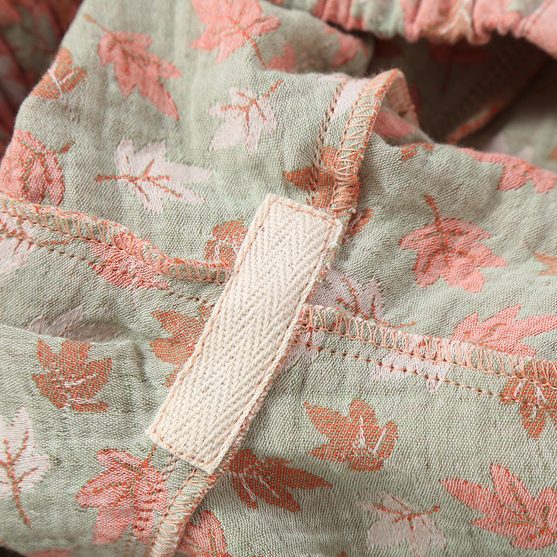 パジャマの新鮮な赤ちゃんの綿の縮の春と秋の夏の薄いタイプの襟の女性の長袖のズボンの2層のガーゼの家の服の長いカバー