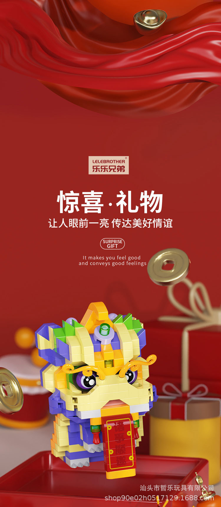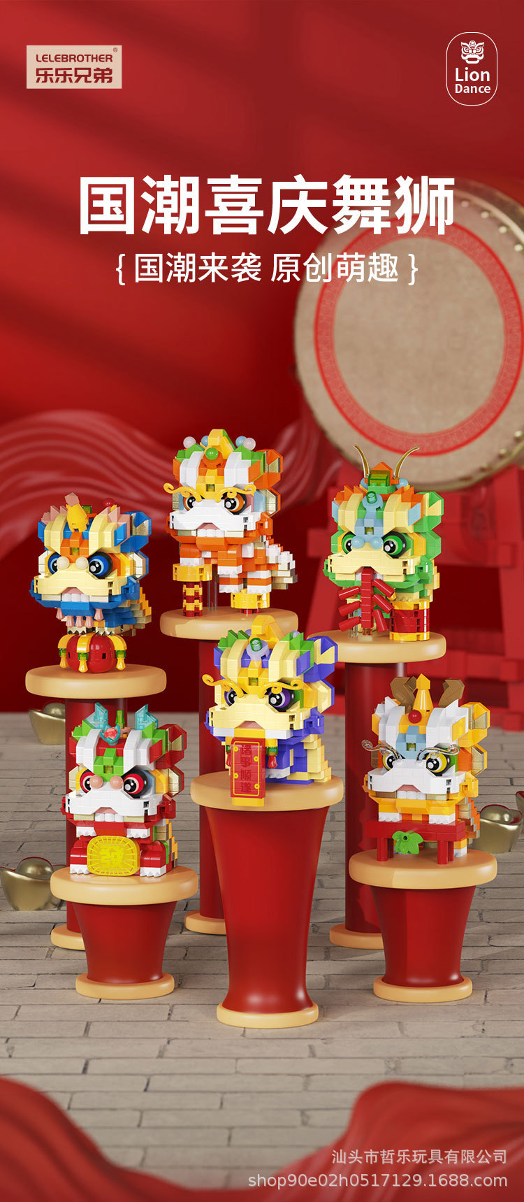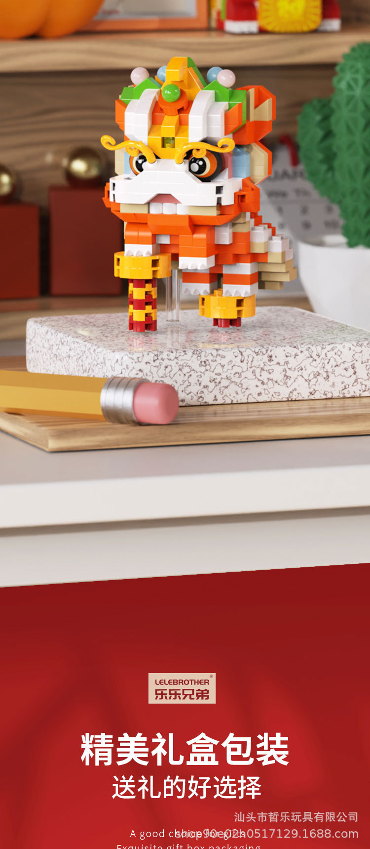 国潮舞獅子祥瑞新春は、パズルの小さな積み木のおもちゃを組み立てて子供の男の子のプレゼント卸売りをします。