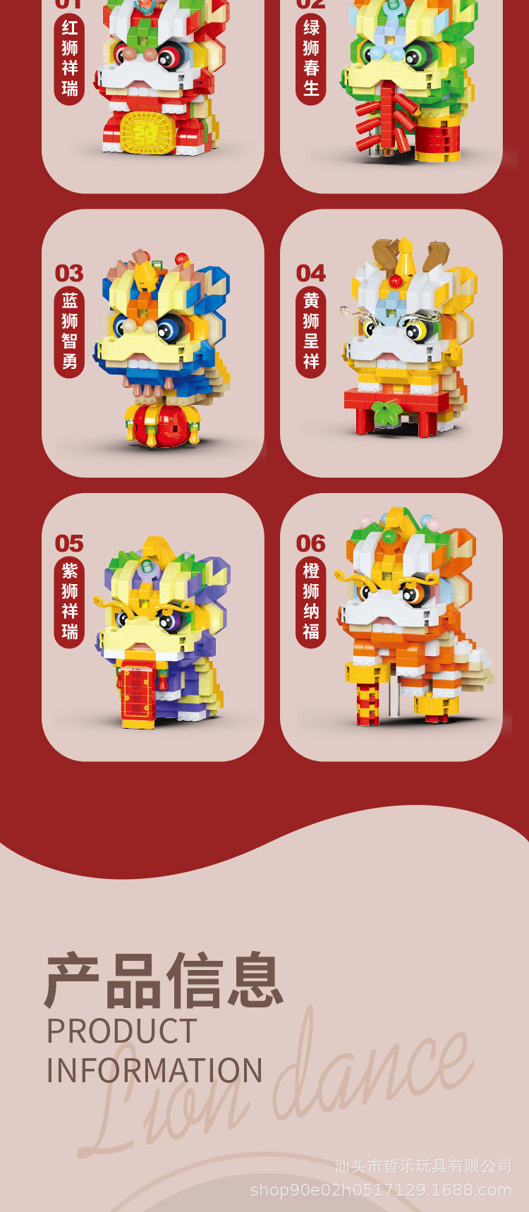 W1802-01/レッドライオンシャンルイ【354個】,W1802-02/グリーンライオンスプリング【363個】,W1802-03/ブルーライオン賢勇【378PCS】,W1802-04/黄獅子呈祥【356個】,W1802-05/パープルライオン瑞【372個】,W1802-06/オレンジライオンナーフ【367個】