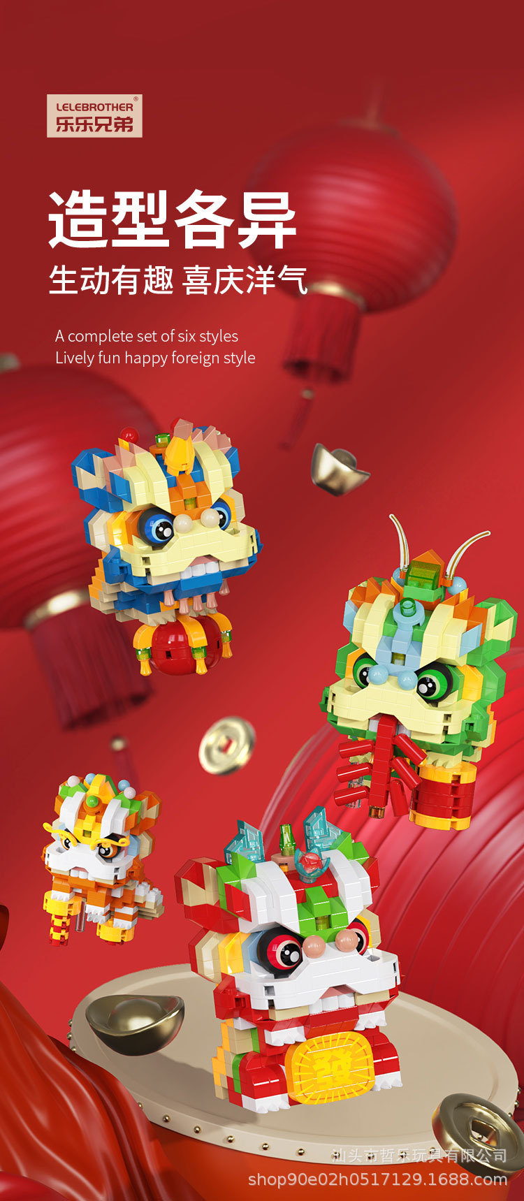 創造的な中国風獅子舞、龍舞、鳳凰舞、小さな粒子で組み立てられる知育玩具、子供用おもちゃ、卓上装飾品、ギフト、卸売