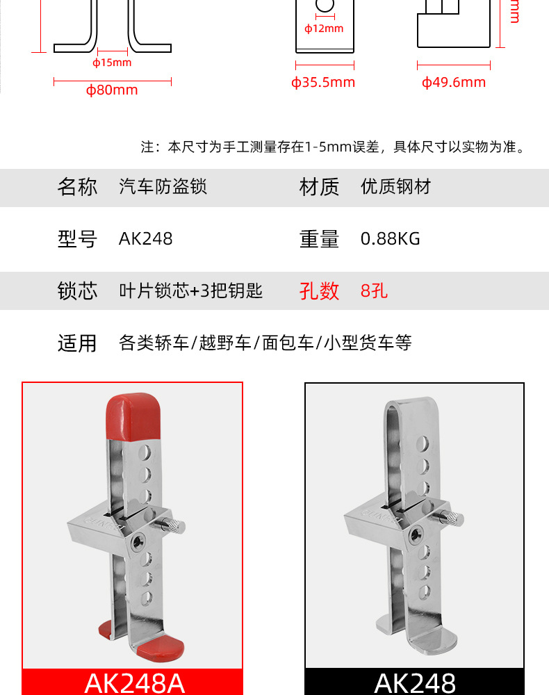 メーカー直販盗難防止自動車ロック自動車クラッチロックブレーキロックオイルロック248