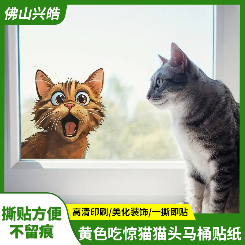 越境創意趣味黄色びっくり猫の頭のステッカーの家の装飾の壁は跡を残さずに貼り付けます。