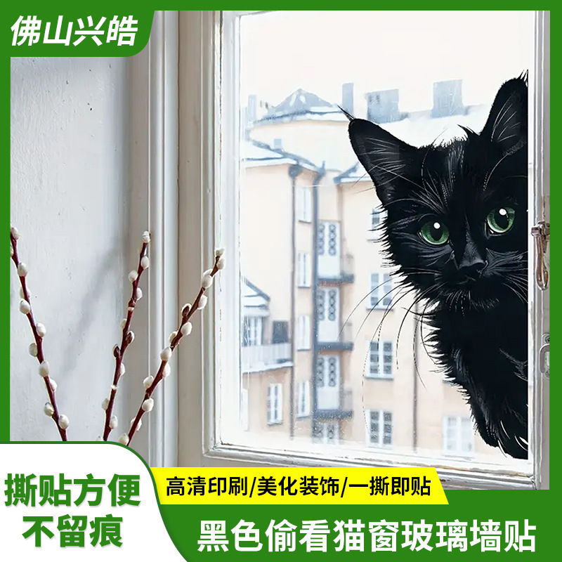 新しいかわいい彩色黒は猫の窓ガラスの壁を覗き込んで家の窓ガラスの装飾を貼って壁に貼り付ける