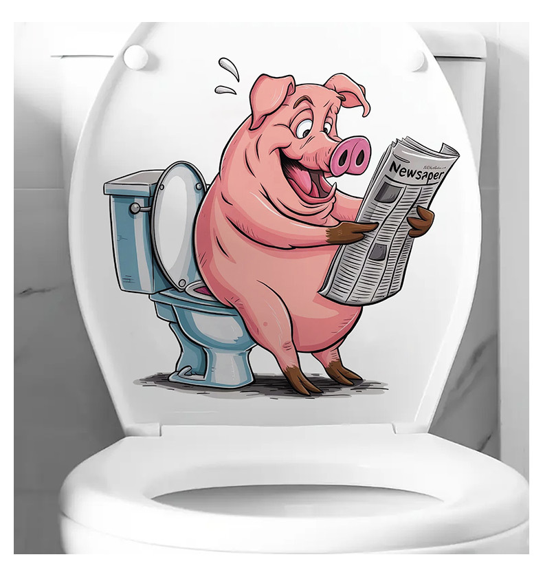 面白い動物は新聞シリーズの便器の蓋のシールを見ます。