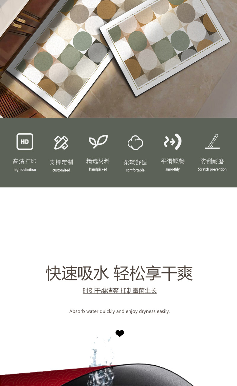 浴室吸水防滑地垫家用硅藻泥卫生间脚垫子厕所洗手间门口速干地毯