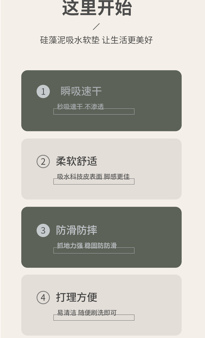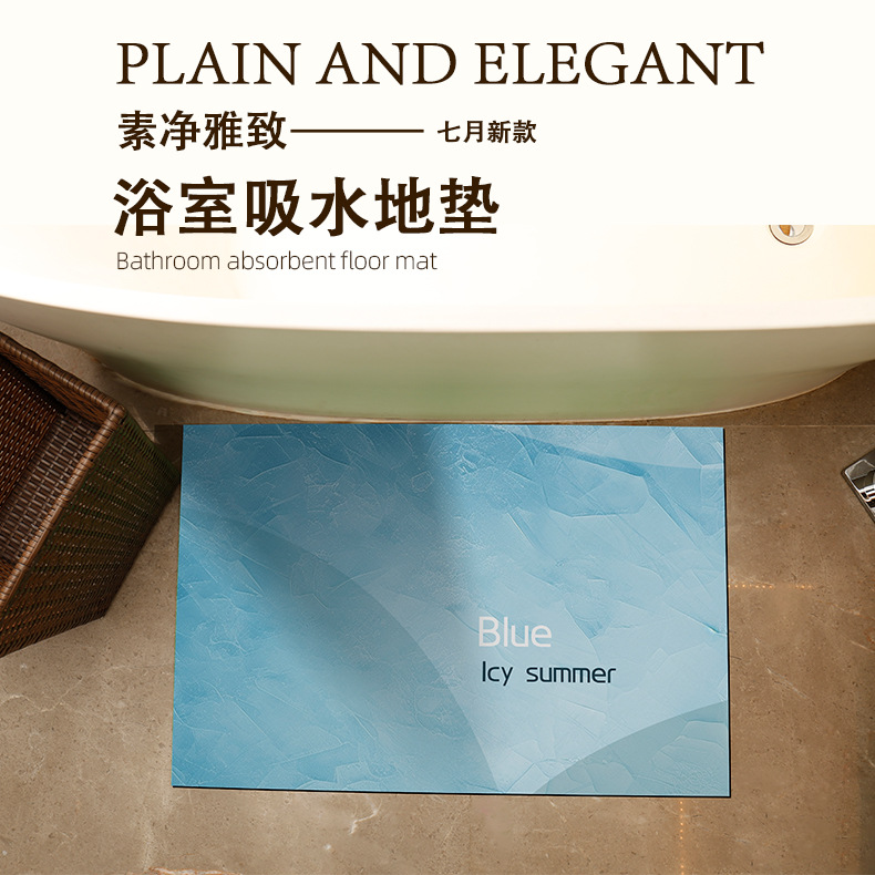 硅藻泥地垫纯色卫生间门口吸水垫厕所地毯浴室速干防滑垫子淋浴房
