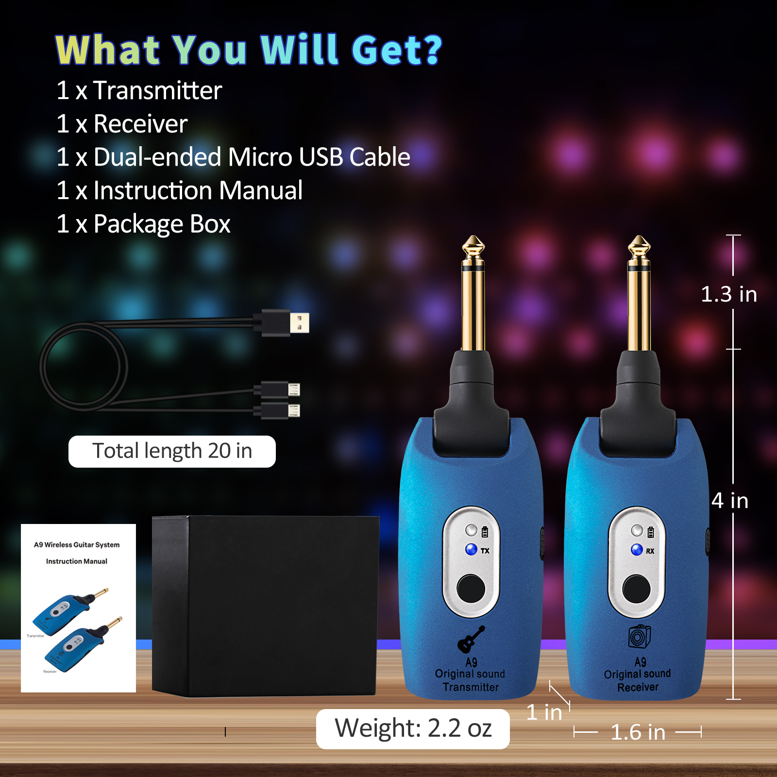 ブラック A9 ギター ワイヤレス レシーバー,ブルー A9 ギター ワイヤレス レシーバー