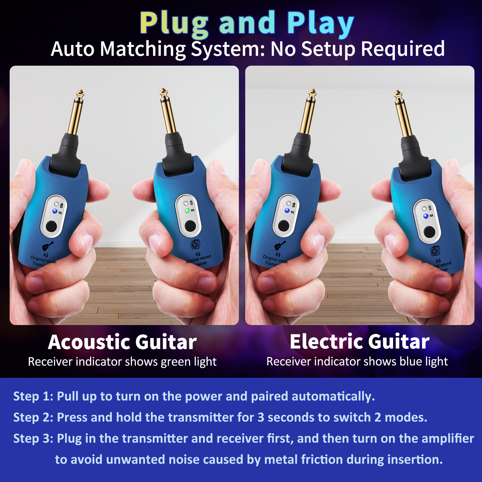 A8 A9楽器ワイヤレスオーディオトランシーバーフォークギターオーディオシステムギターワイヤレス伝送システム