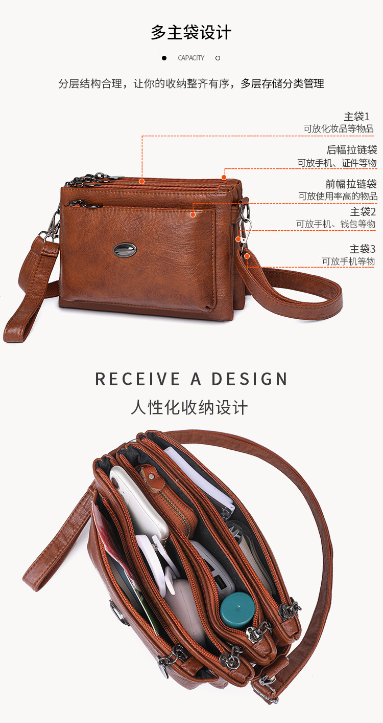 ショルダーバッグ女性2025新型ファッション多層レディースバッグソフトレザー携帯電話バッグ財布手持ち斜め掛けE18
