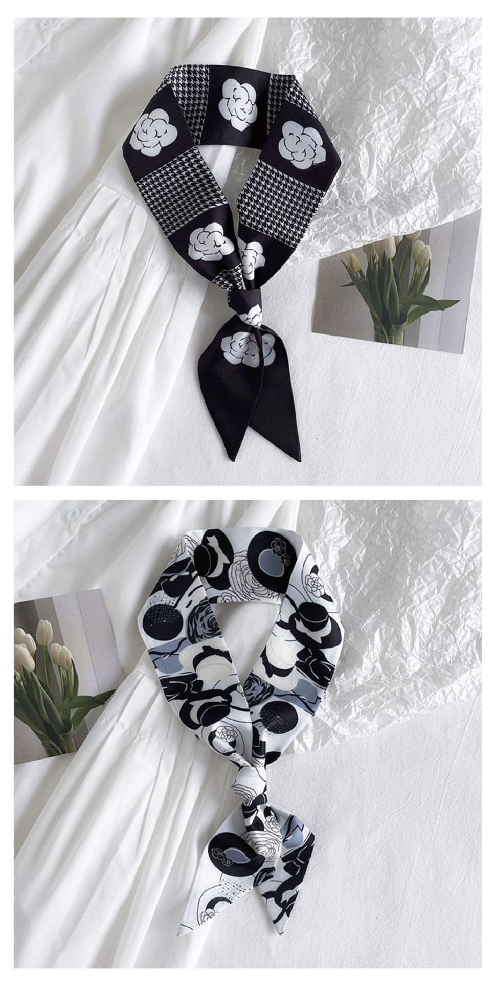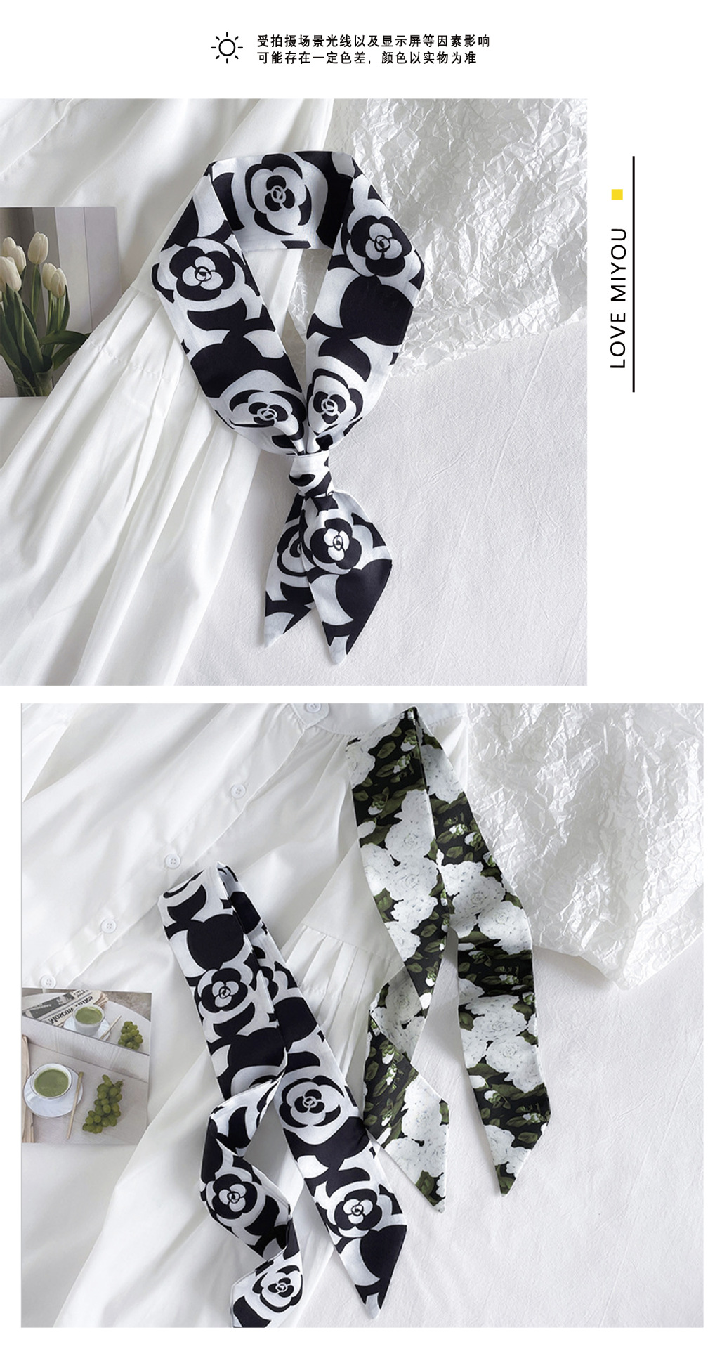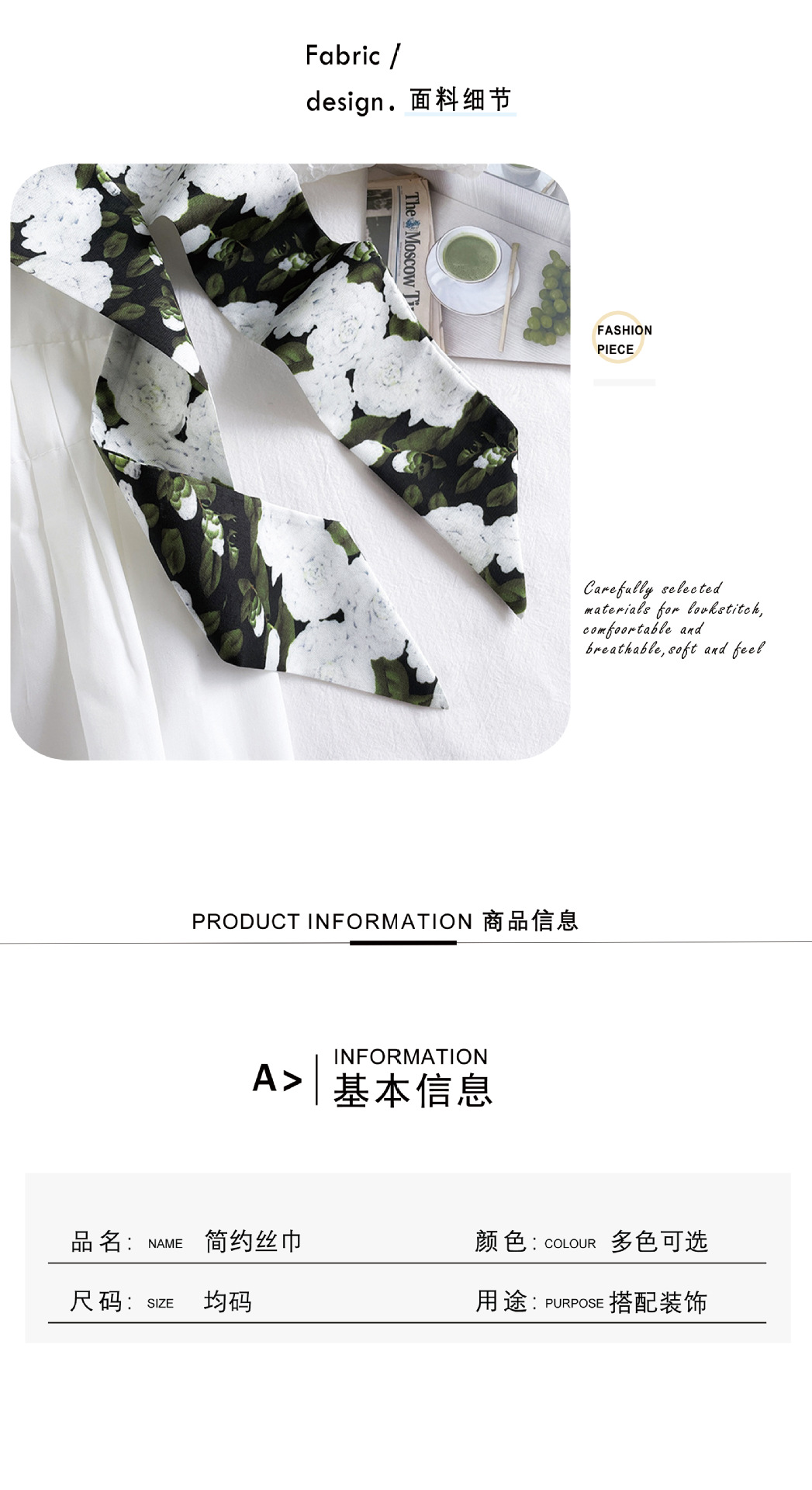 フレンチレトロ風花柄シルクスカーフ、新作多用途ネックタイ、バッグハンドル装飾、おしゃれなヘアバンド、リボンアクセサリー