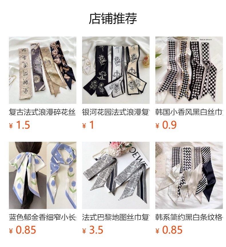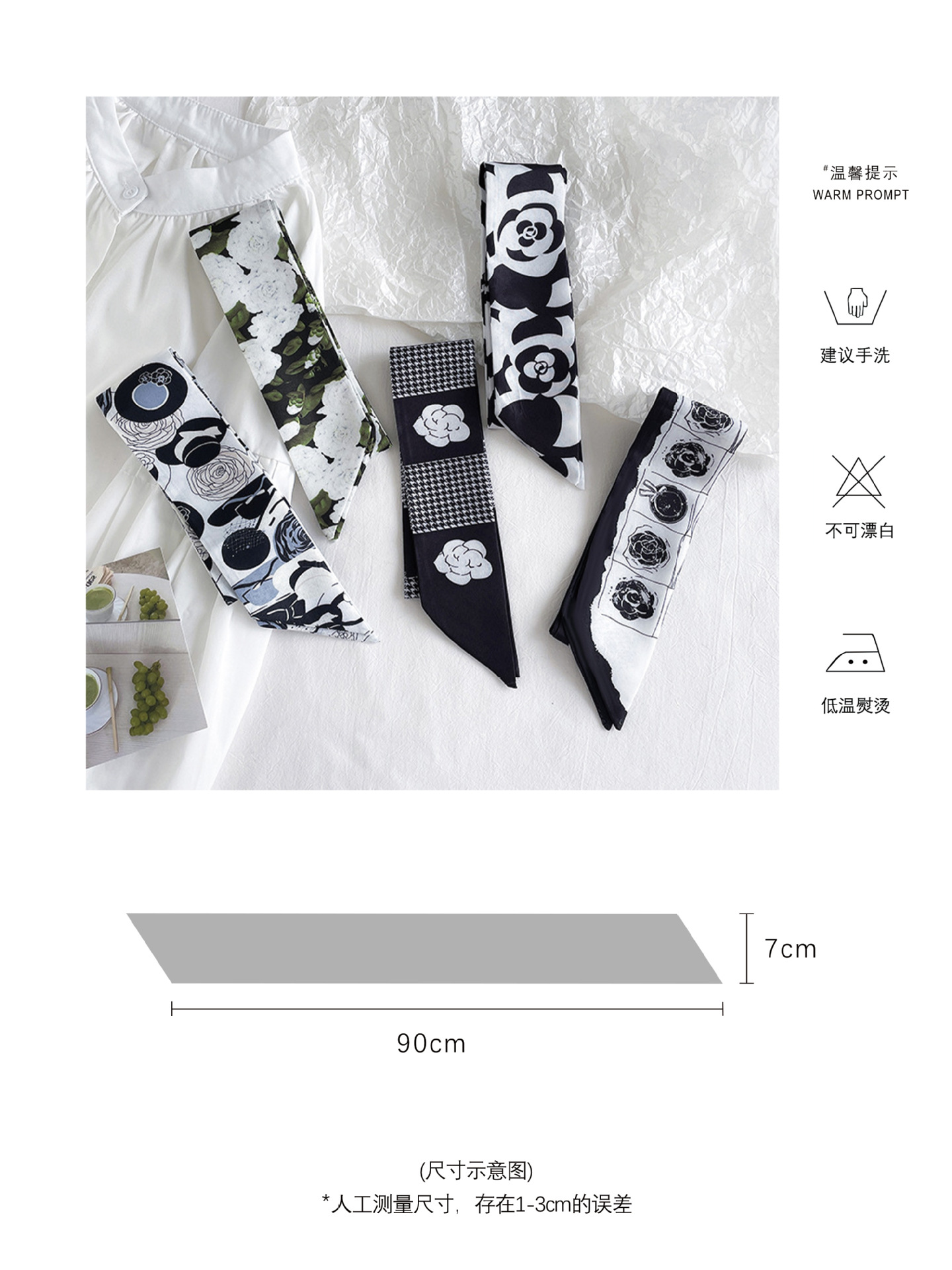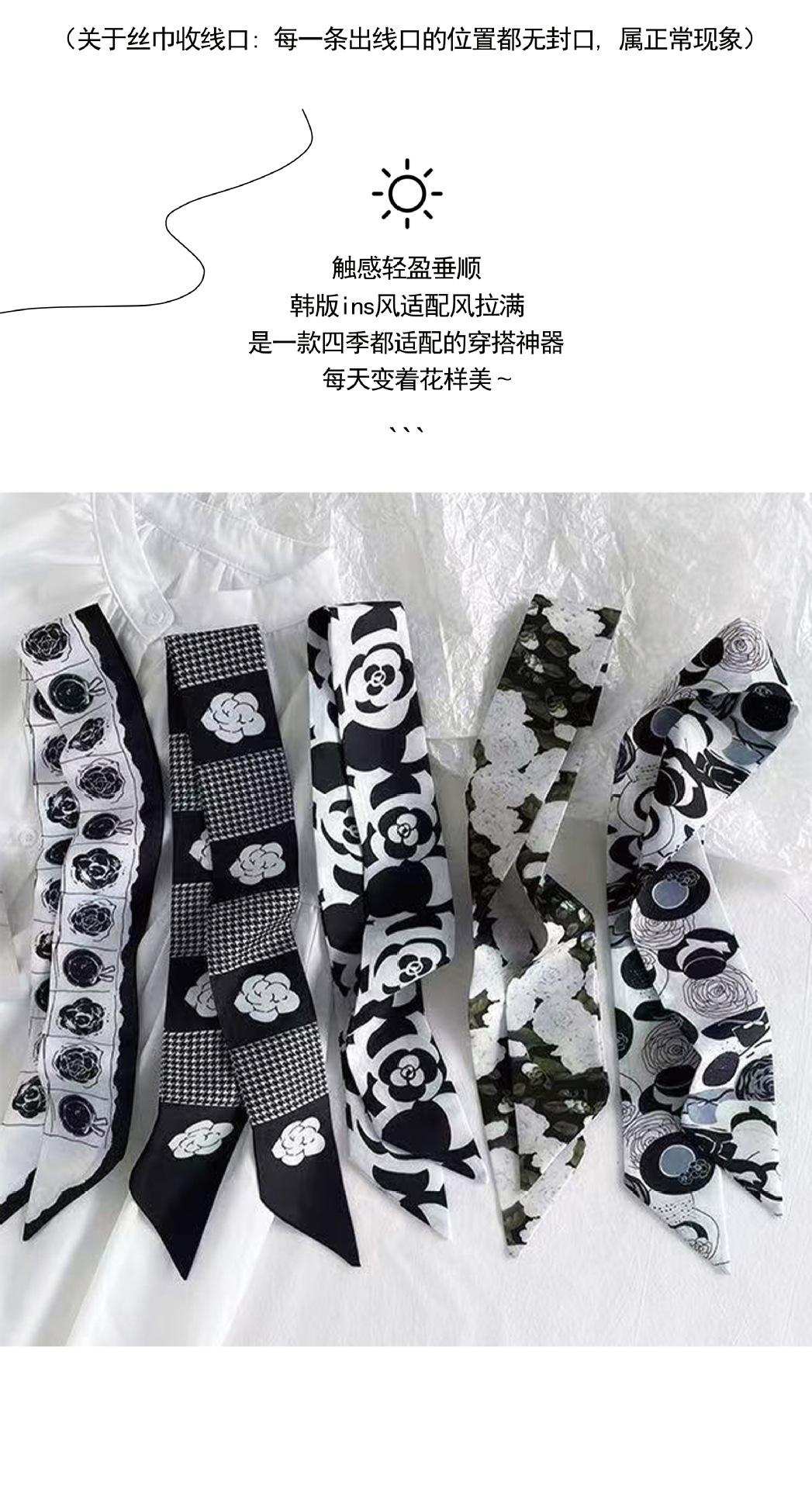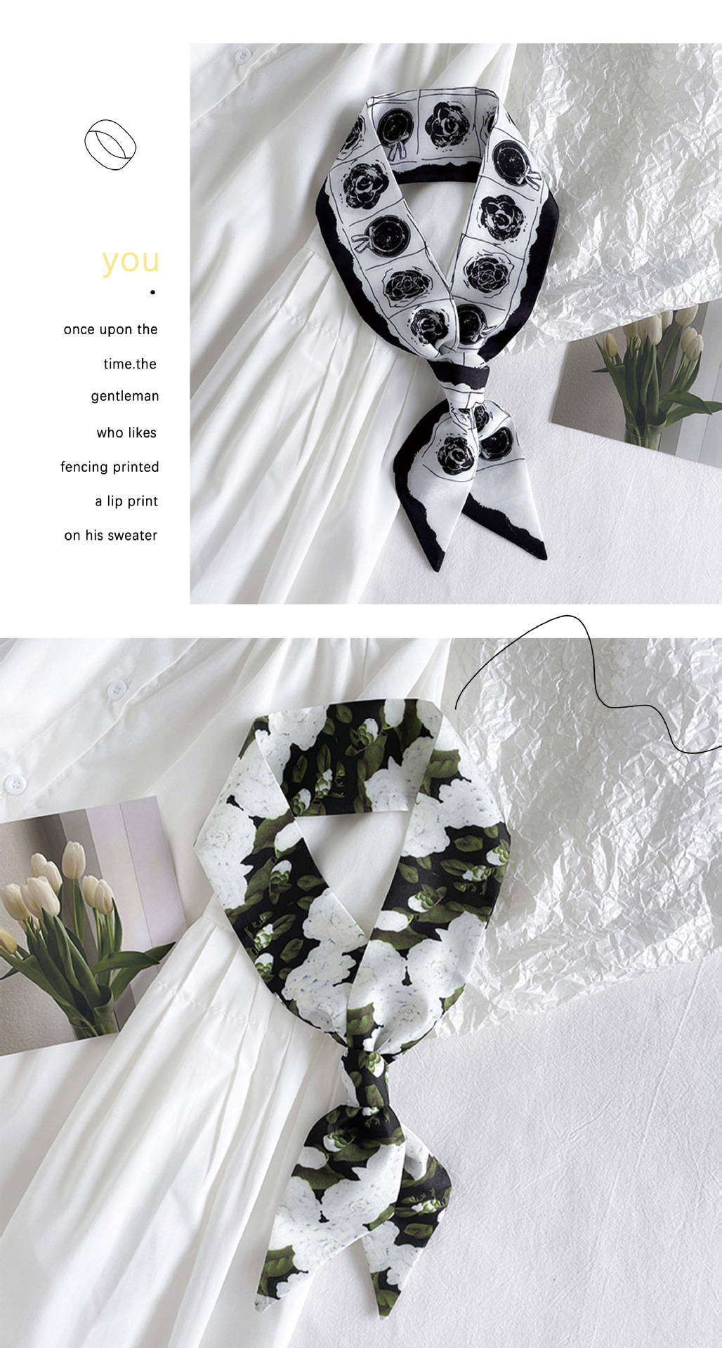 フレンチレトロ風花柄シルクスカーフ、新作多用途ネックタイ、バッグハンドル装飾、おしゃれなヘアバンド、リボンアクセサリー