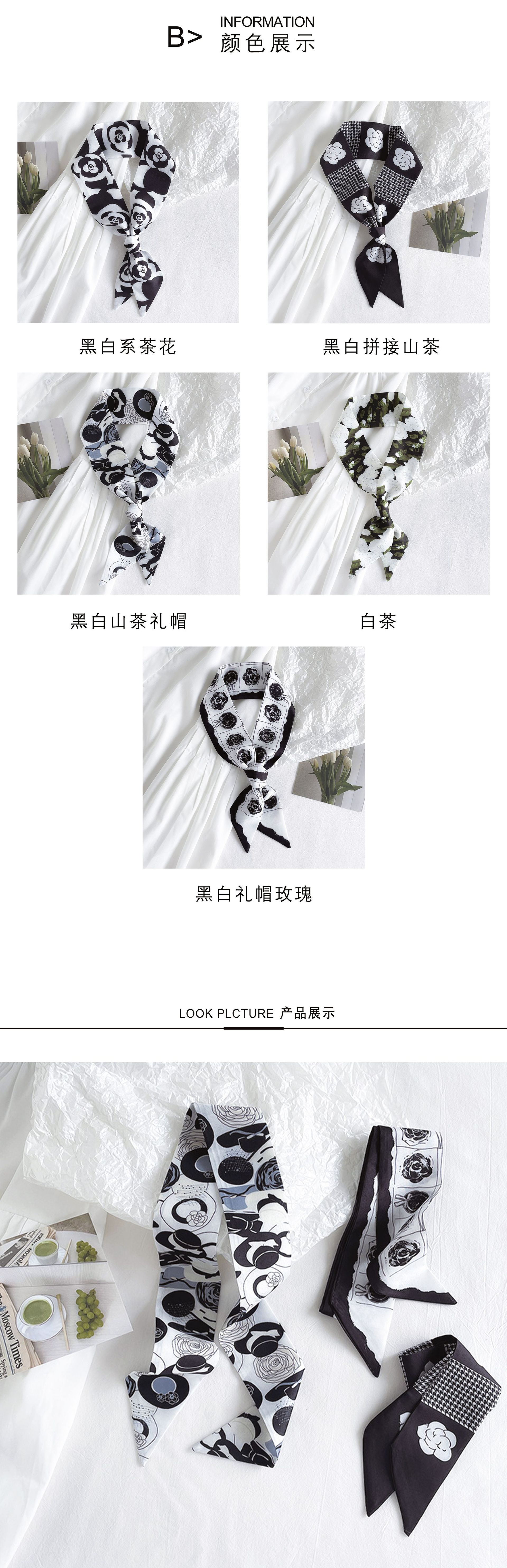 フランス式の清冷系の小さいスカーフのツバキの花のプリントのシルクの布の気質の長い条は髪を結んで包みます。
