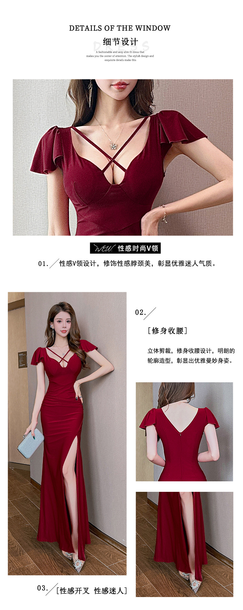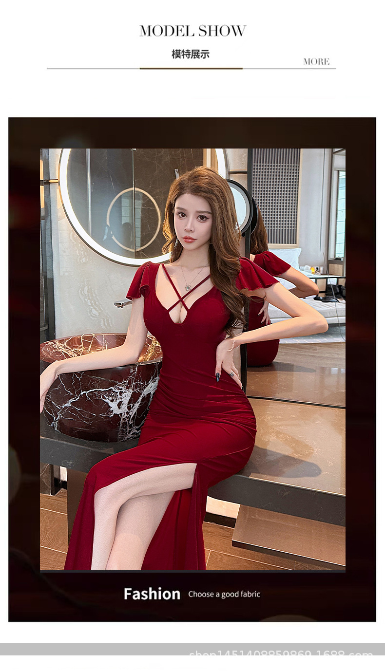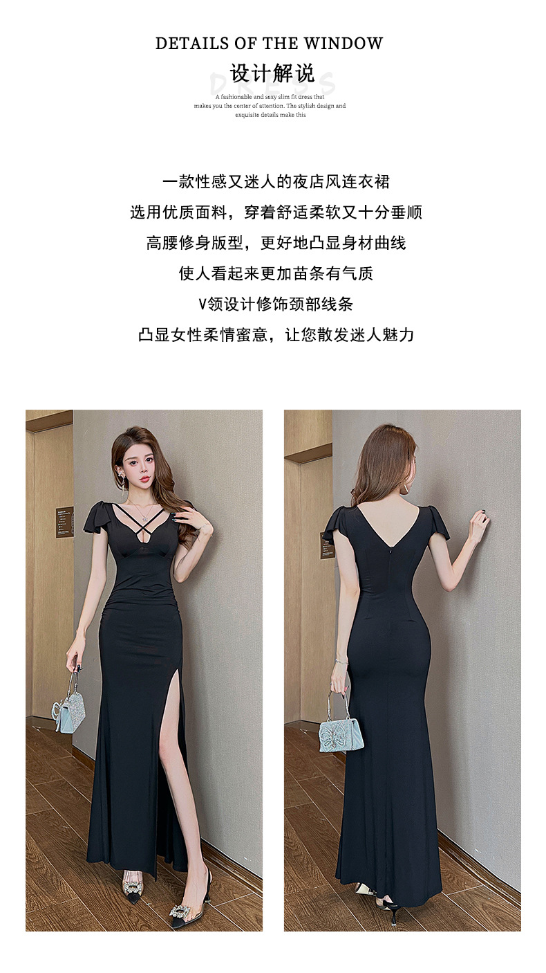 新款夜店显瘦低胸技师工作服高开叉长裙气质包臀晚礼服