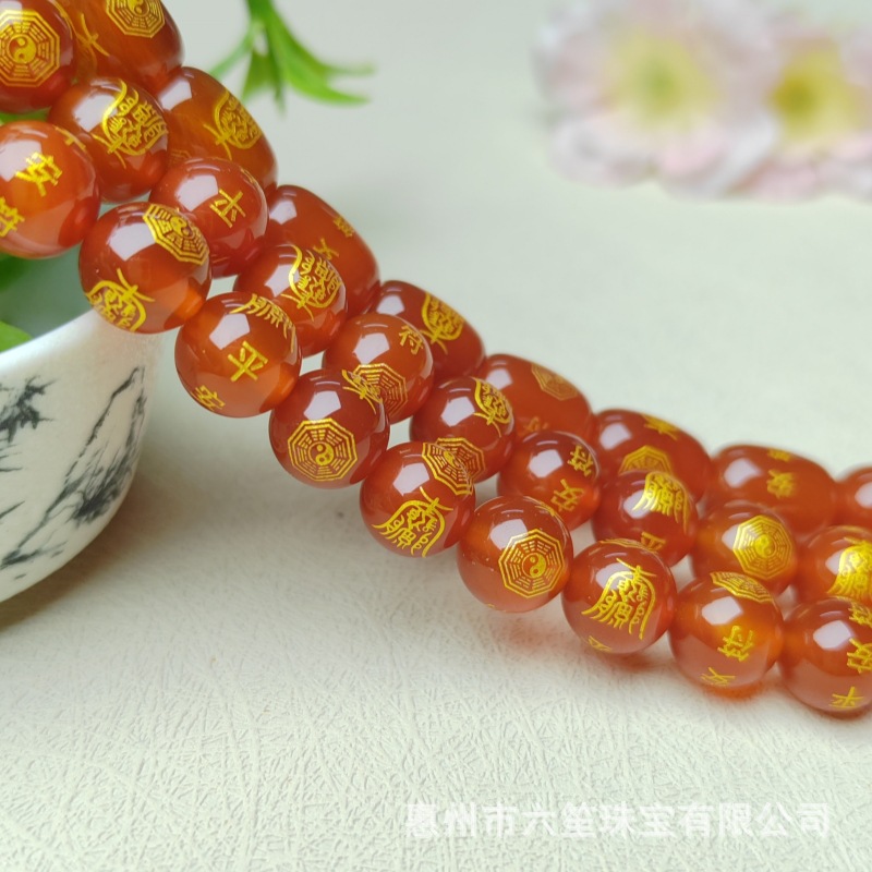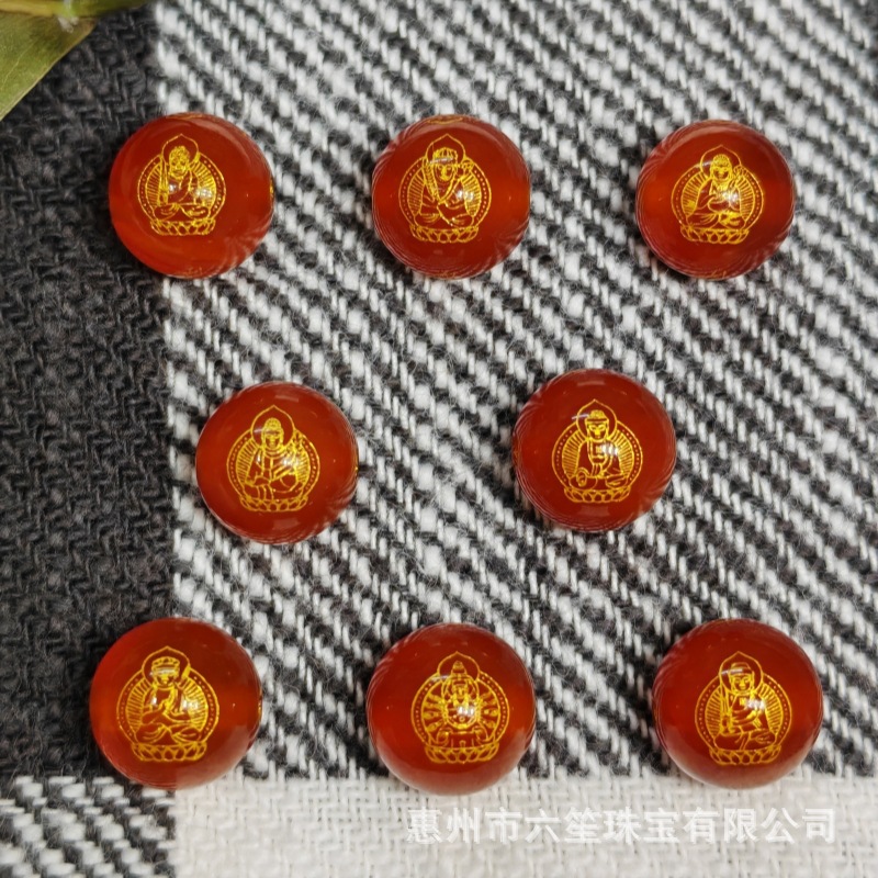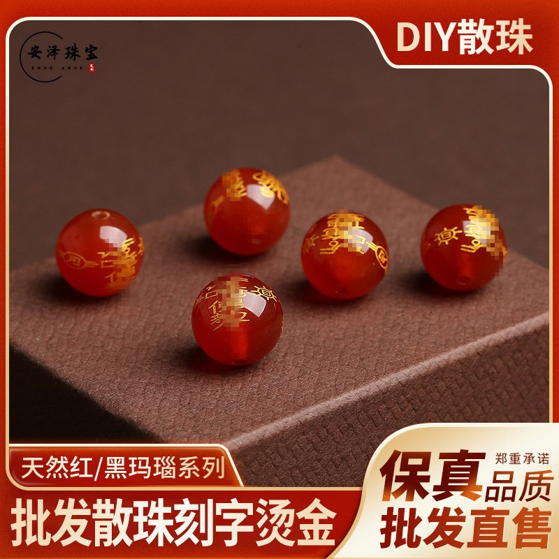 2025年瑪瑙は金にアイロンをかけて字を彫って太歳の桶の玉の赤い瑪瑙の散珠のDIYの装飾品は玉のメーカーを配合して玉を卸売りします。