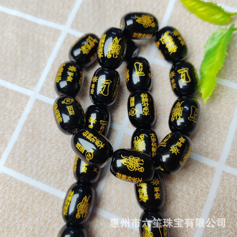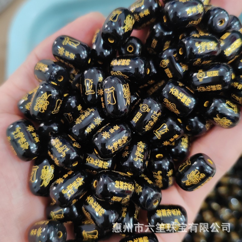 天然红黑玛瑙太岁符桶珠玛瑙烫金雕刻散珠diy手串饰品配件批发