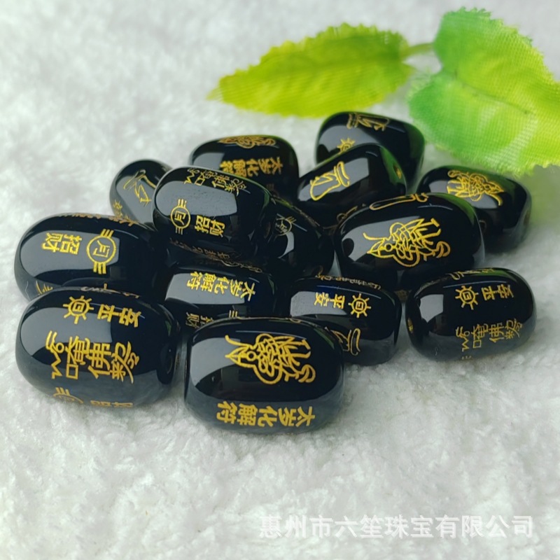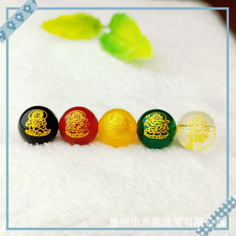 黒紅瑪瑙の八大守護神の玉の玉の本命の仏の散珠は金にアイロンをかけて字を彫って玉のdiyのアクセサリの卸売りを防ぎます。