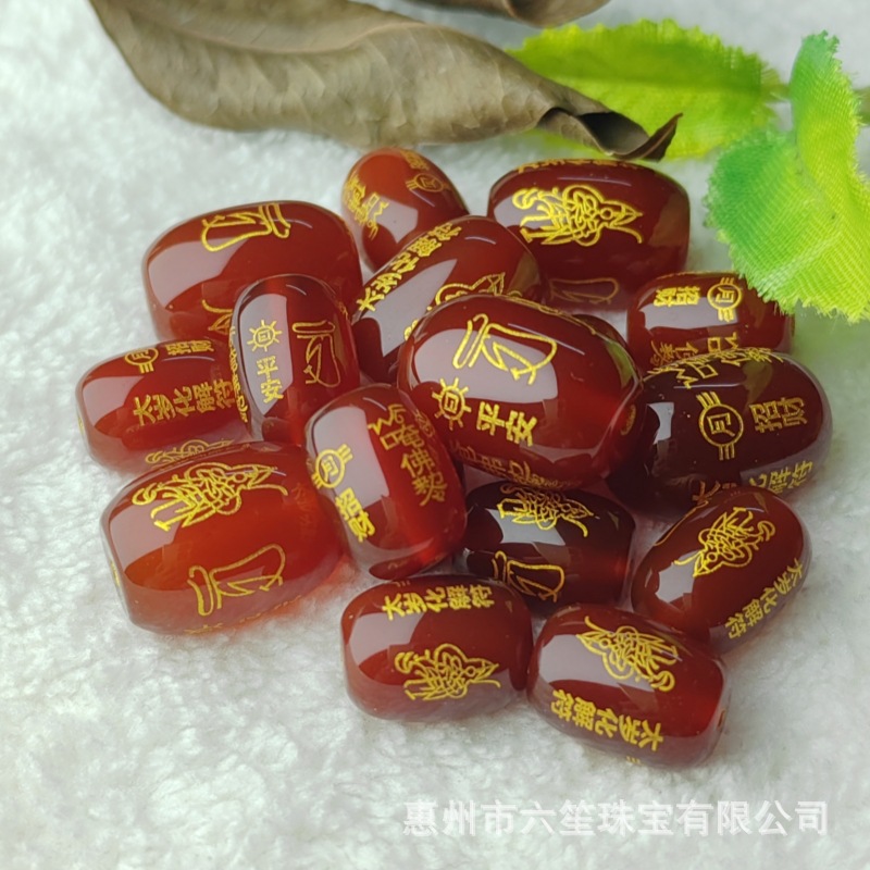 2026年玛瑙烫金刻字太岁桶珠红玛瑙散珠 DIY饰品配珠厂家批发珠子