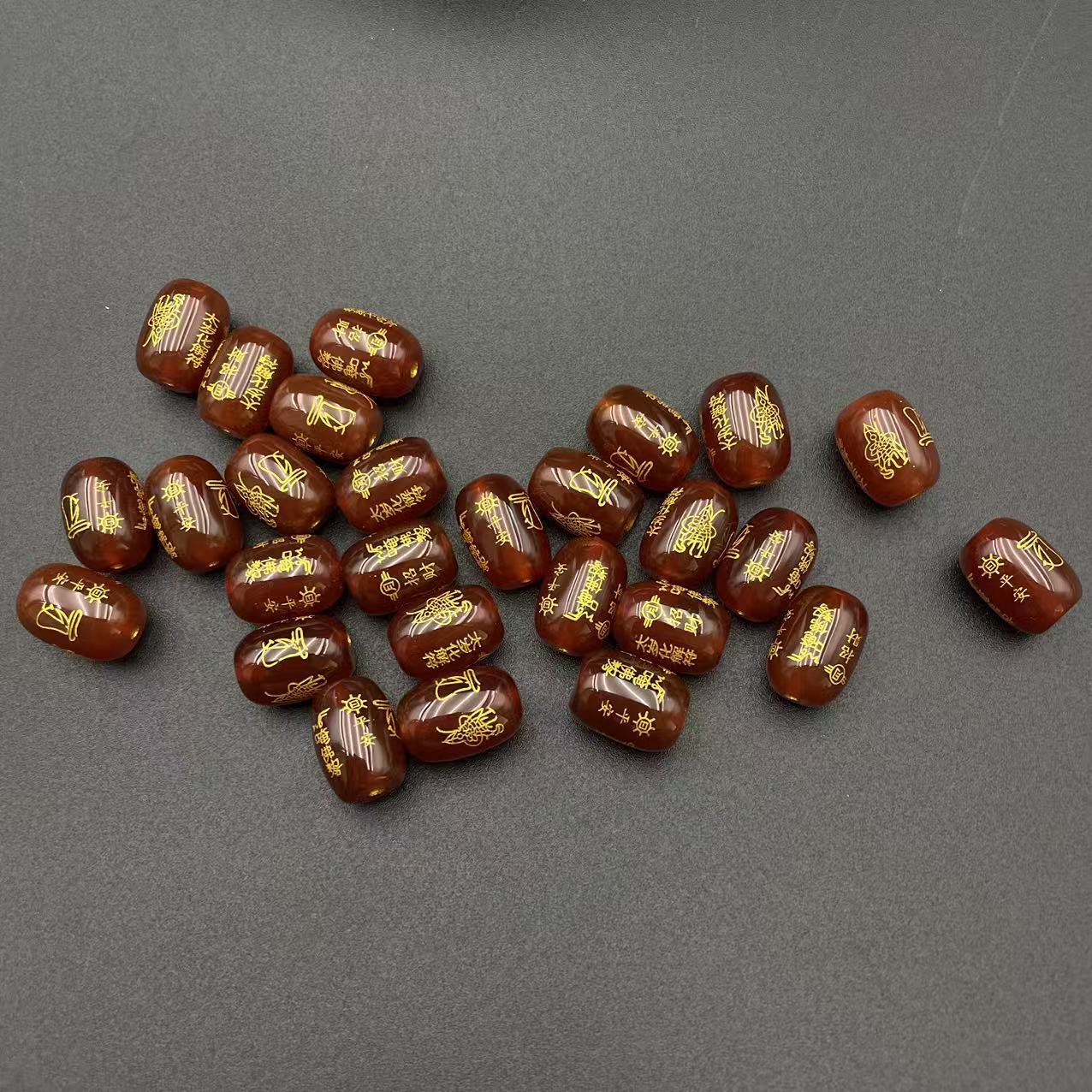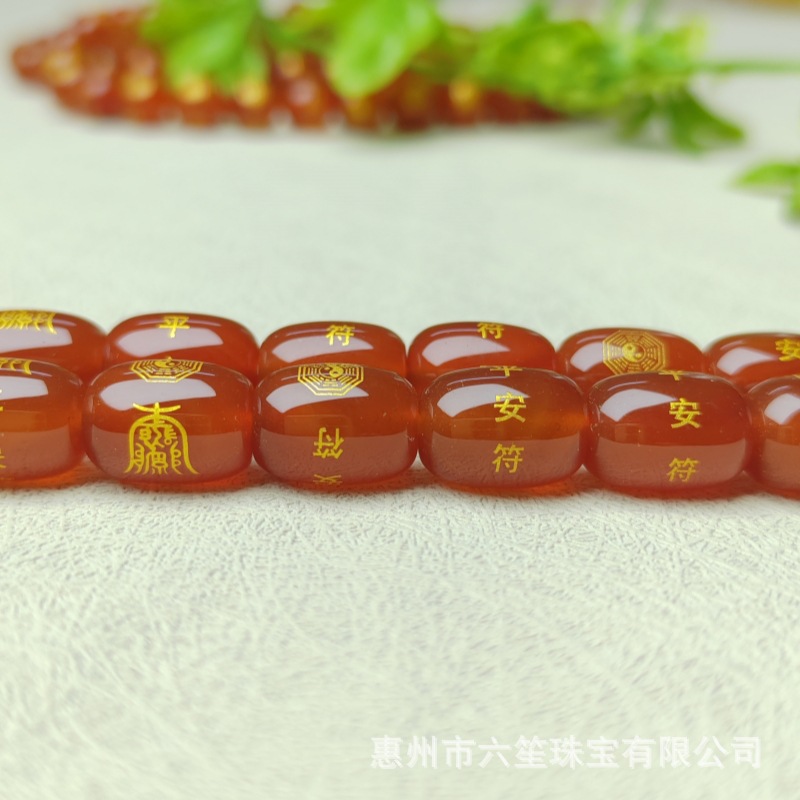 马年天然红玛瑙烫金太岁化解符桶珠散珠DIY饰品配件手工串珠工厂