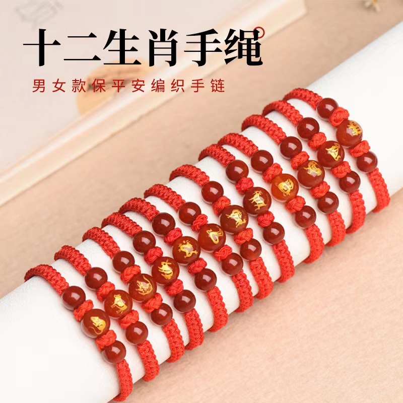 十二生肖の赤い縄のブレスレットは手で紅瑪瑙を編みます。