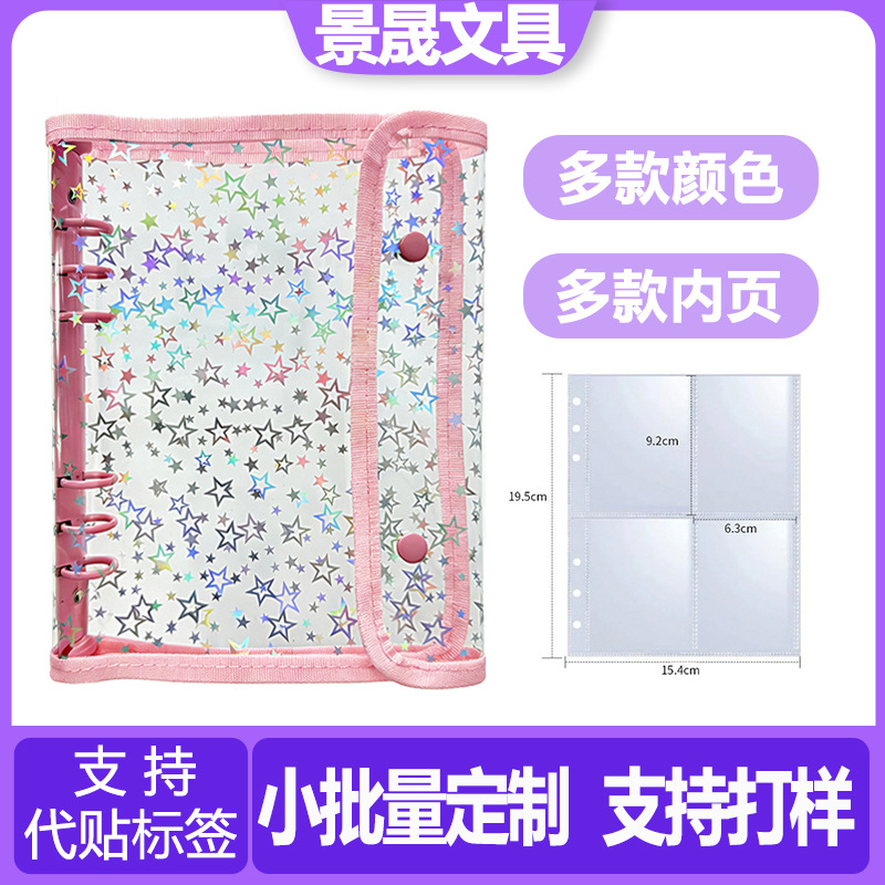 小红书爆款彩色A5活页本明星单封套装炫彩星星6孔包边收纳手账本