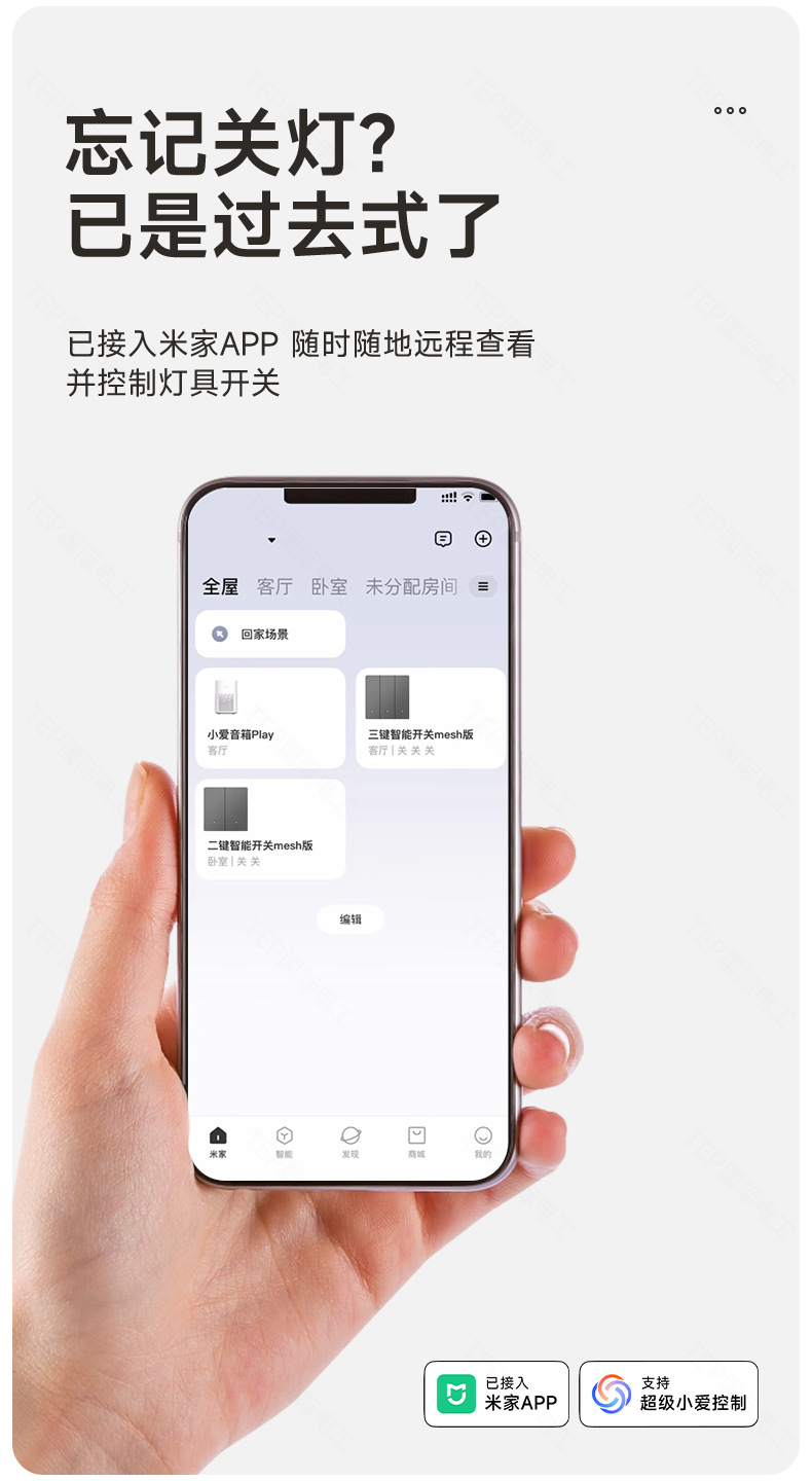 米家APP超薄型肌感スイッチパネルにアクセスして、小愛さんの音声遠隔制御をサポートしています
