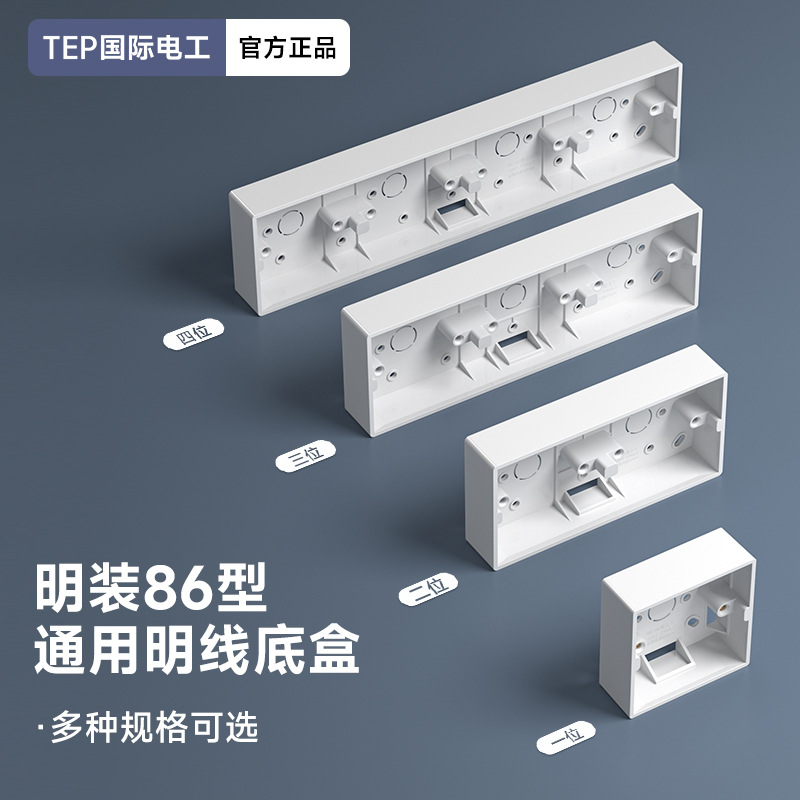 厚みのある86型露出配線ボックス、プラチナグレー、黒胡桃木目調PVC底箱、壁スイッチソケット底箱、配線ボックス