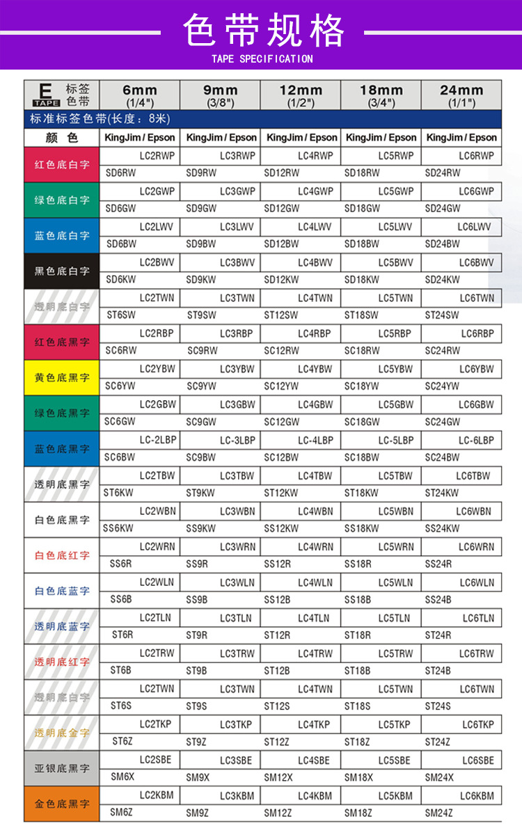 24mm红底黑字LC6RBP/SC24RW.?24mm蓝底黑字LC-6LBP/SC24BW.??