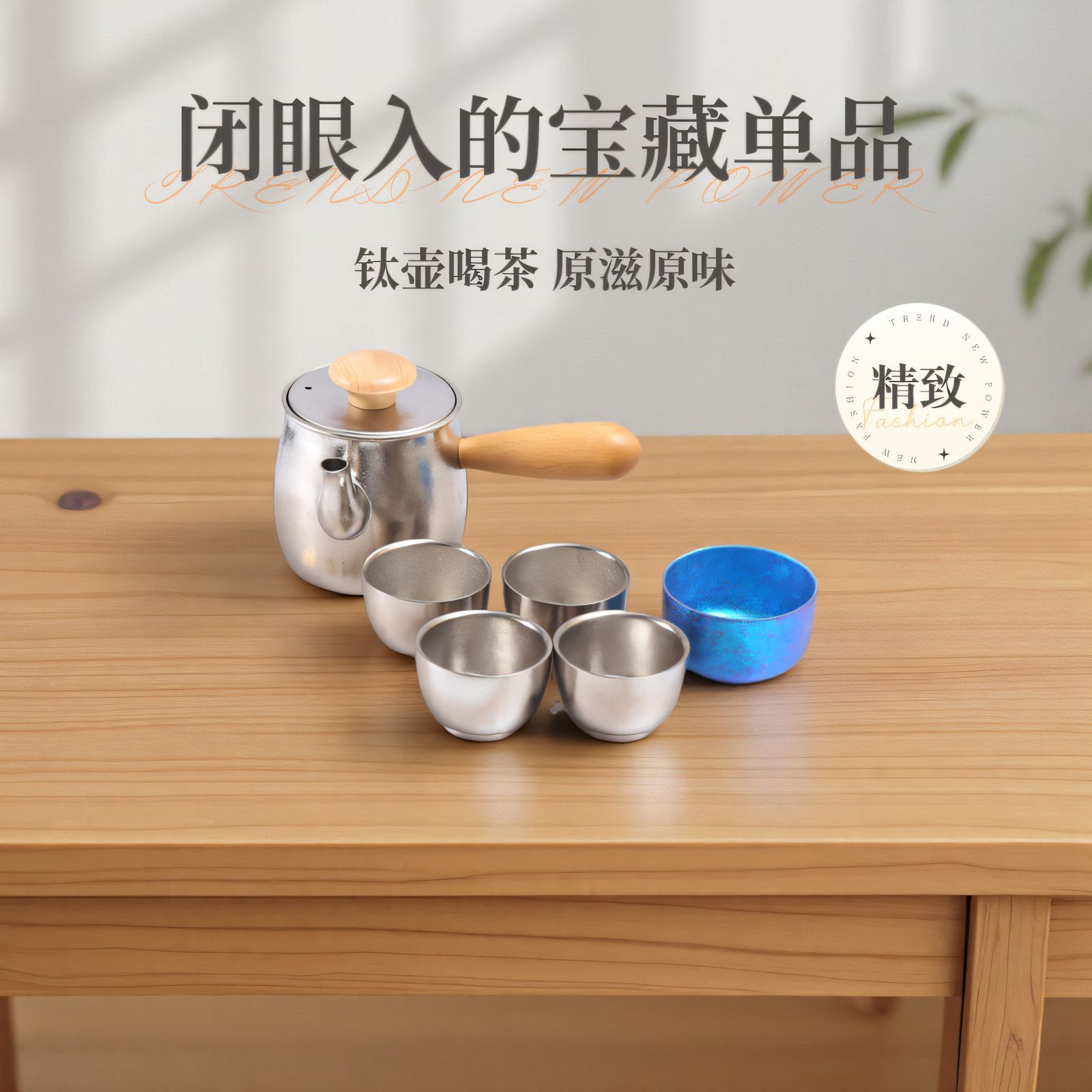 純チタンケトル、家庭用純チタンケトル、抗菌鮮度保持梁ケトル、茶沸かしポータブルティーセット、高級チタンケトル
