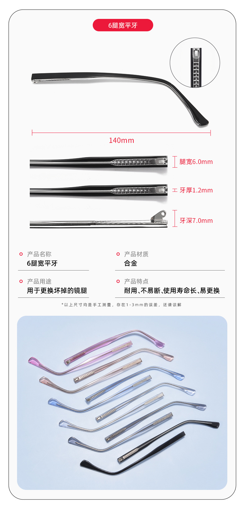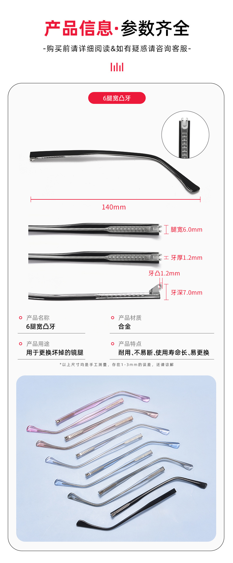 2.根据详情页的结构图,判断现有镜腿是哪种结构的(平牙/外牙)