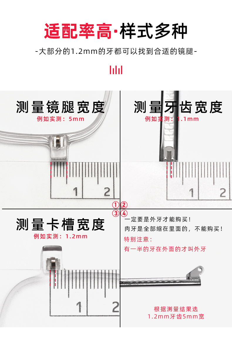 3.量尺寸,再结合对应的结构,选择相匹配尺寸的镜腿