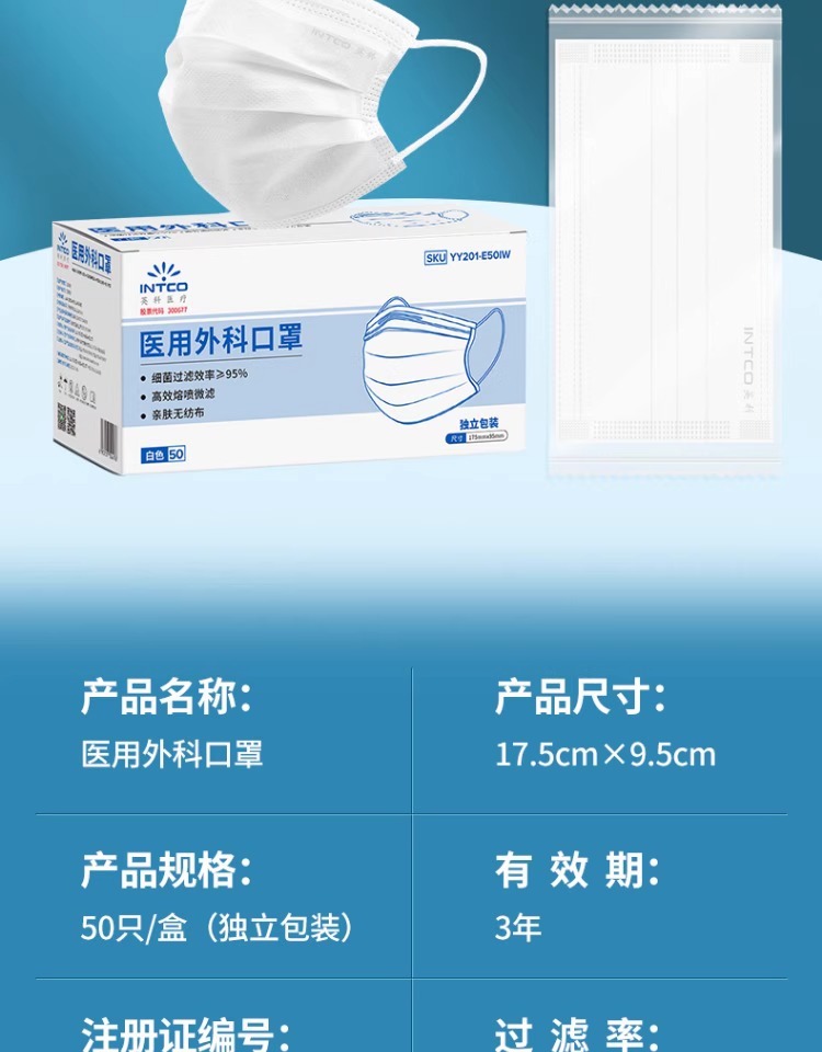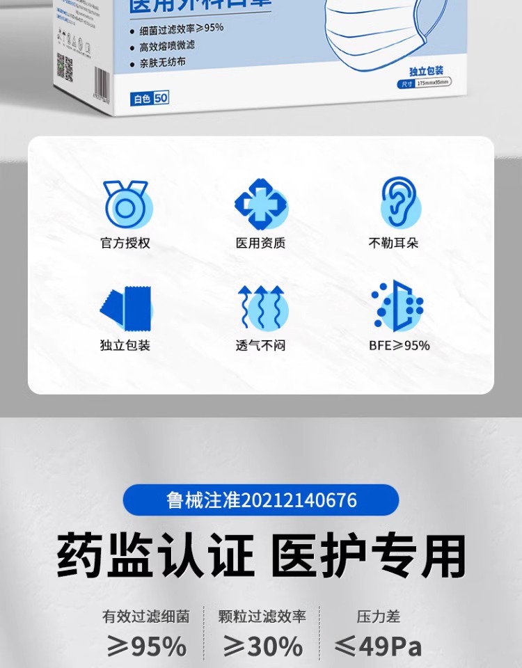医用外科口罩一次性口罩医用级独立包装灭菌级械字号高效防护亲肤