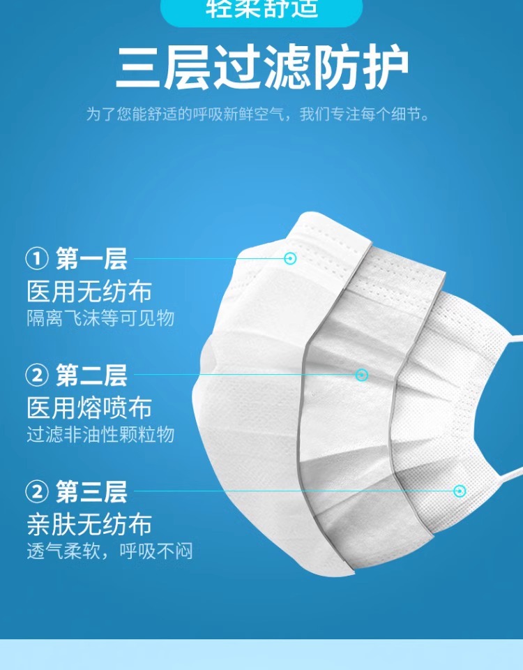 ブランド公式卸売り穏健医療医療用マスク外科機械サイズ成人医療用使い捨てマスク50枚