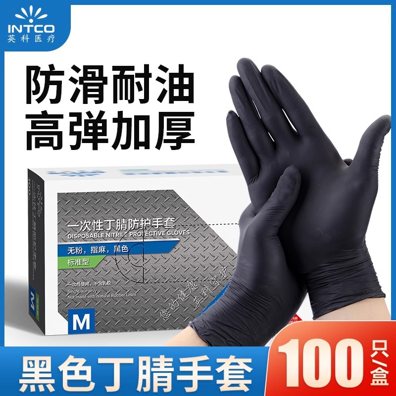 英科使い捨て手袋黒色ニトリルゴム食品級飲食家事皿洗い手袋卸売り