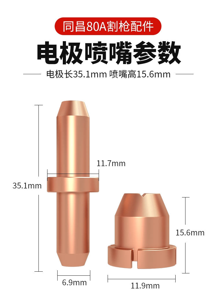 プラズマ切断ノズル同昌80電極ノズル切断機切断ガン部品糸100分流器保護カバーノズル