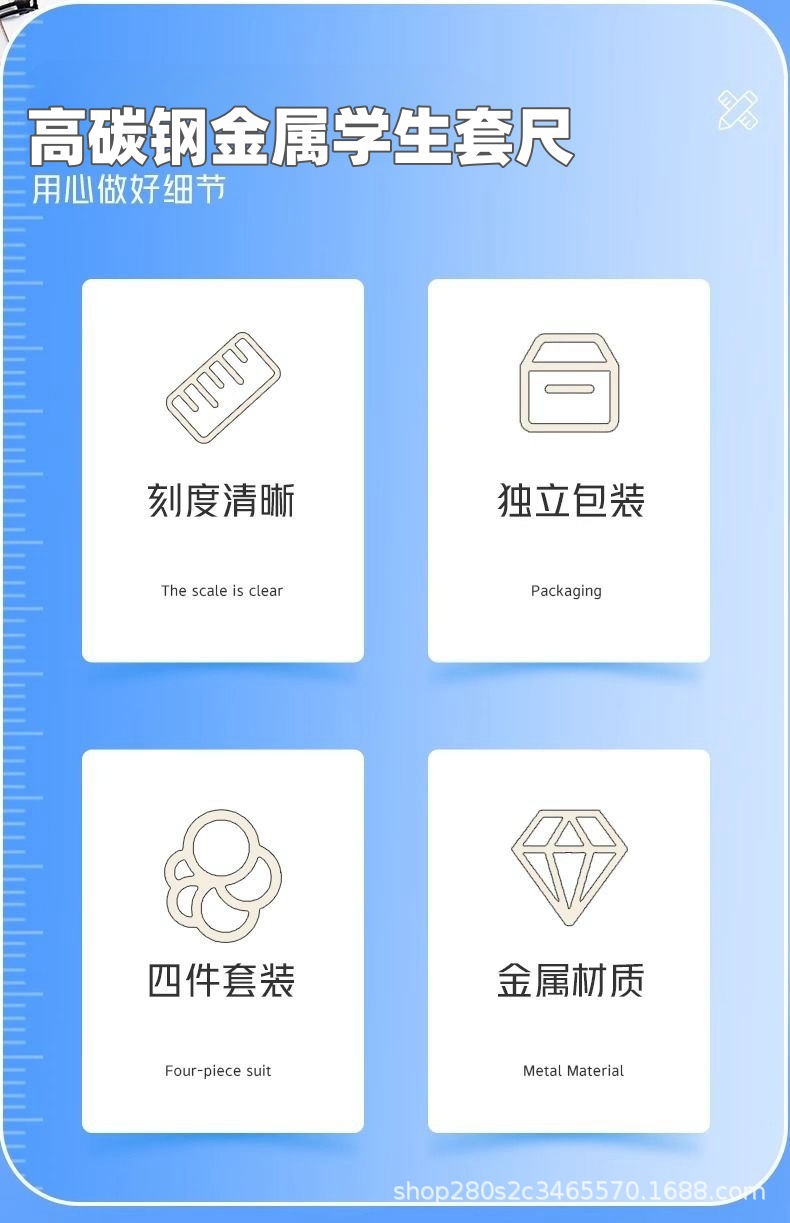 高颜值金属直尺四件套小学生三角尺子套装抖音文化同款激光刻字