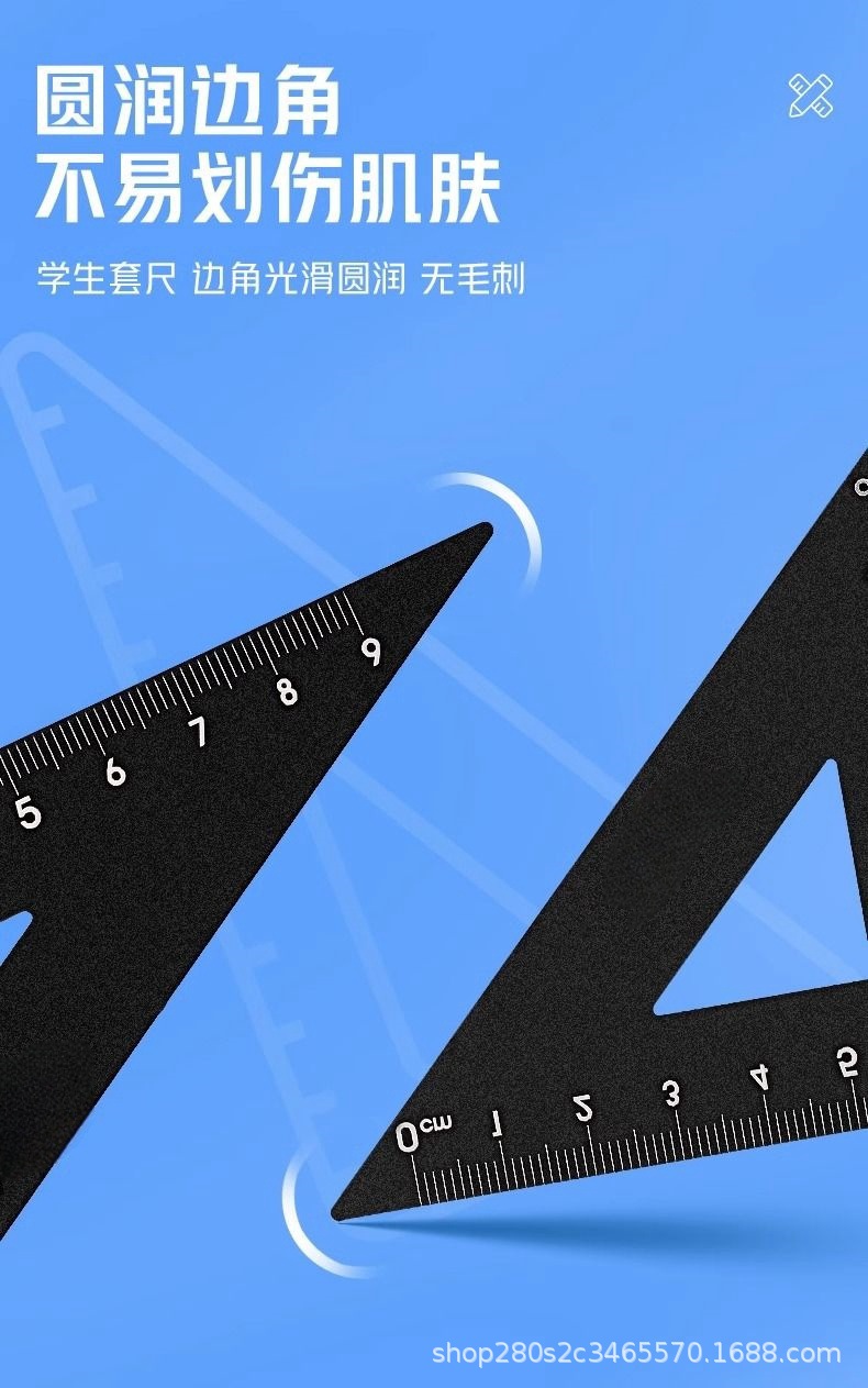 高碳钢15CM/18CM/20CM套尺小学生专用三角板量角器三角尺套装初中