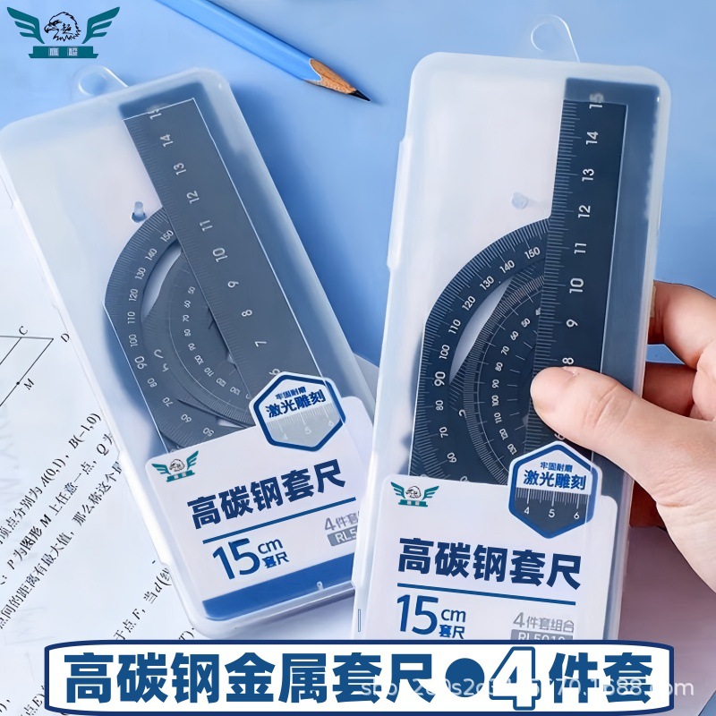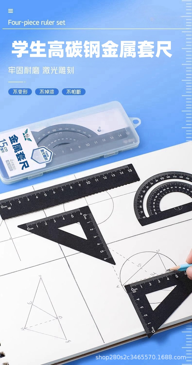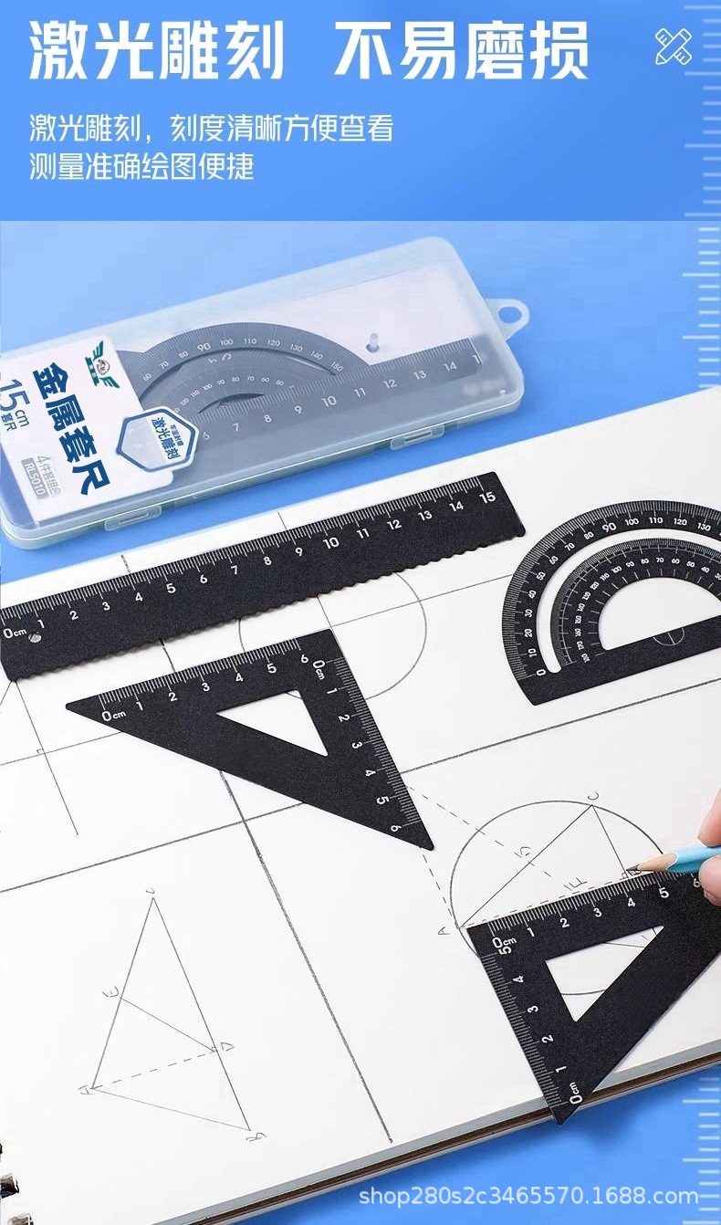 アルミ合金定規セットオーダーメイドレーザー彫刻小中学生専用直尺三角板円角尺四点セット