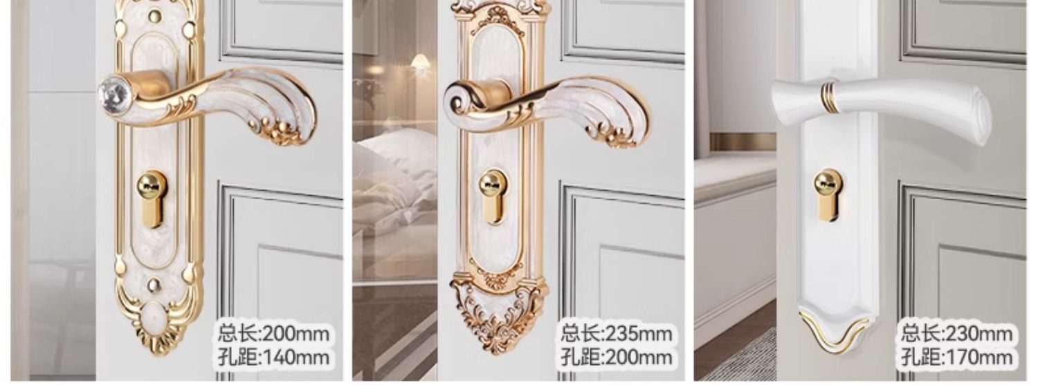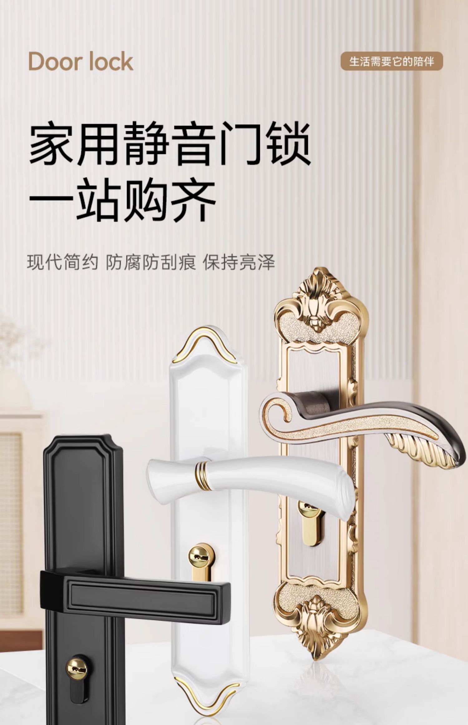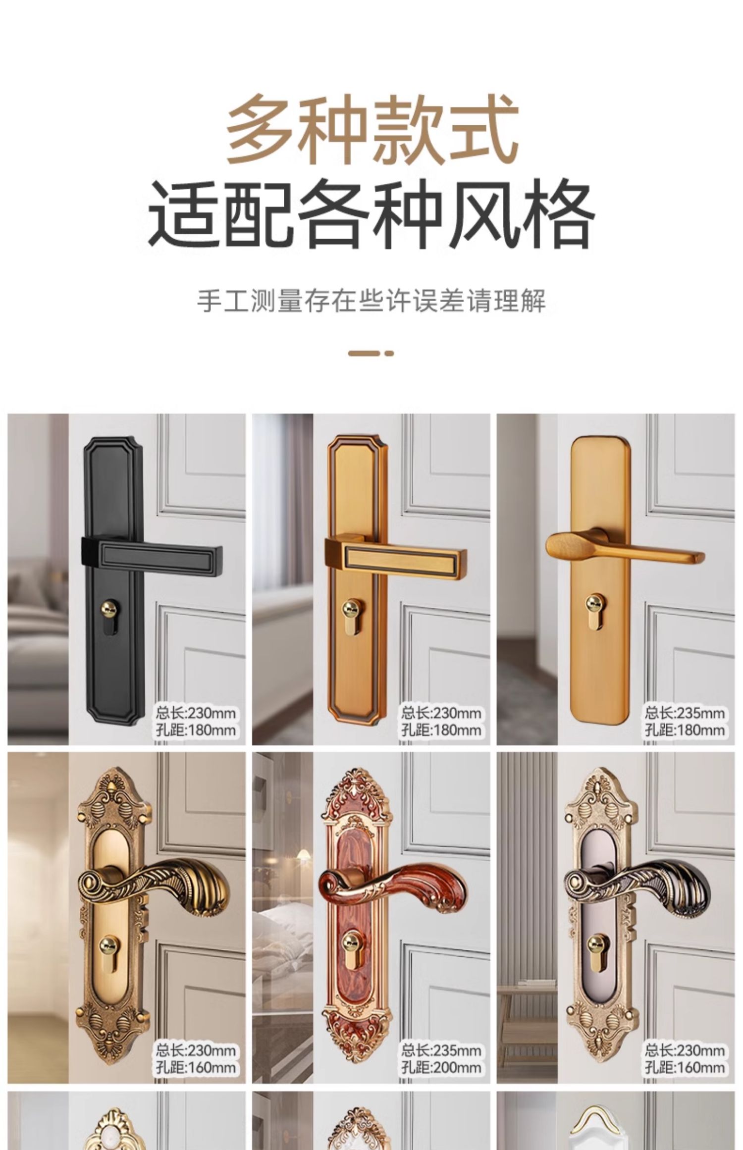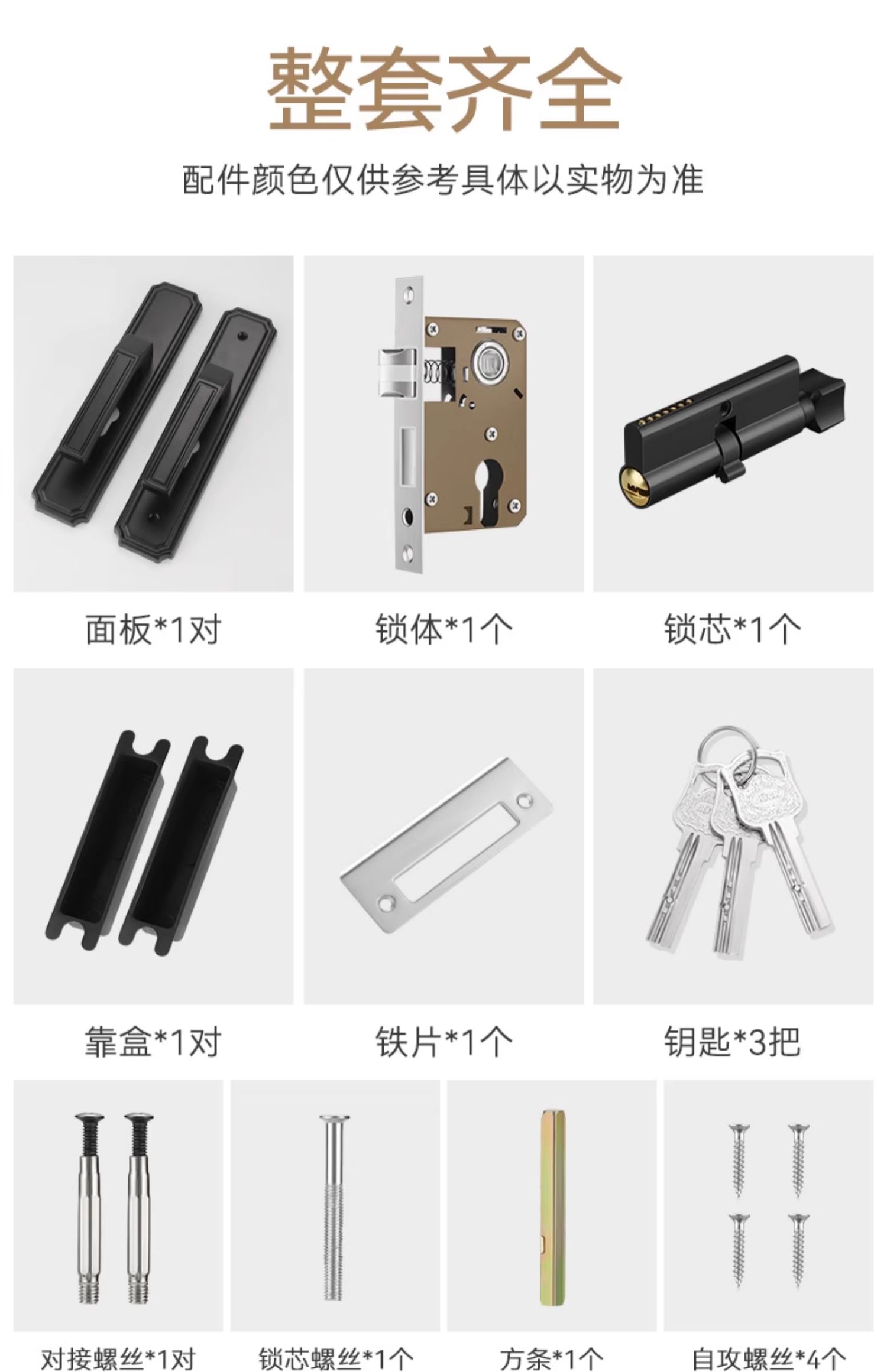 ドアロック家庭用汎用型寝室内ドア黒色ロック3点セット静音旧式ドアハンドル旧ドアロック